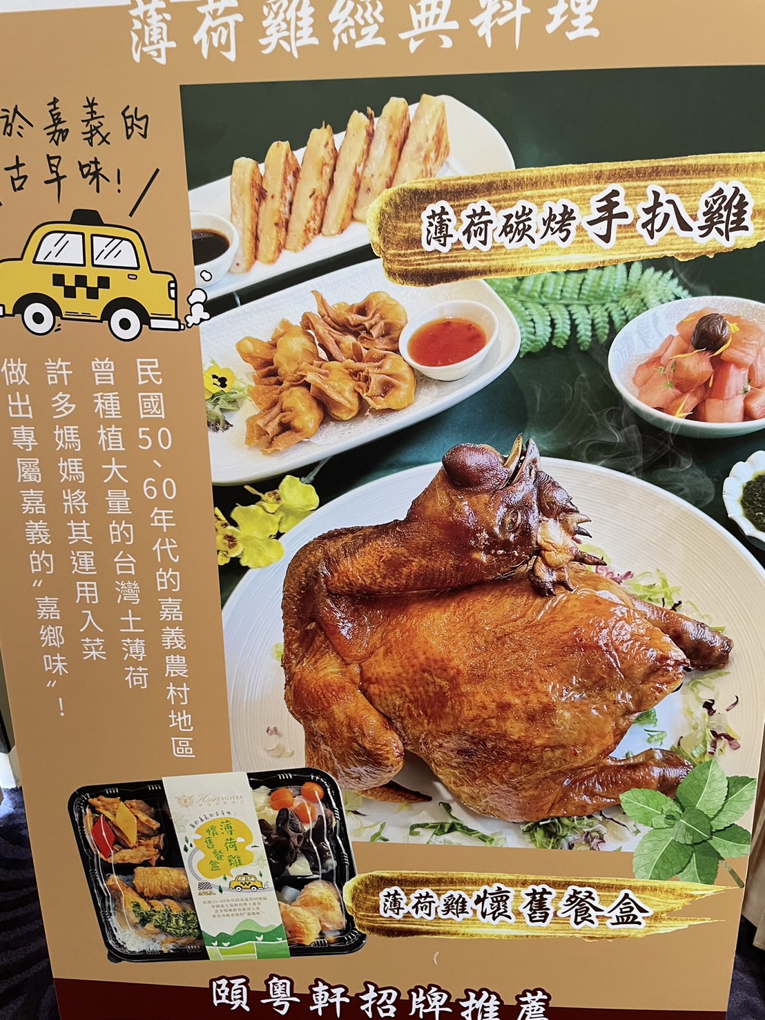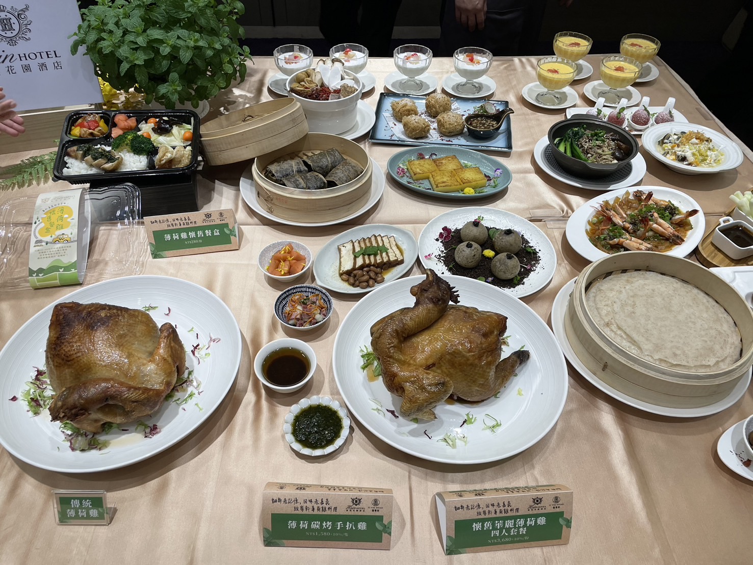 新悦花園酒店頤粵軒李哲維行政主廚,經數十次的嘗試,完美復刻經典古早味,一道沒有食譜流傳的料理-薄荷雞,劉映雪執行董事說,重回民國50、60年代的嘉義,那時在民雄、大林、新港及溪口一帶,曾種植大量的台灣土薄荷,薄荷具有非常清涼的香味,相當適合作為調味料的一部份,薄荷雞也是當時農村和媽媽的私房料理之一。經主廚的成功復刻後,已經能完美呈現當時的古早味。