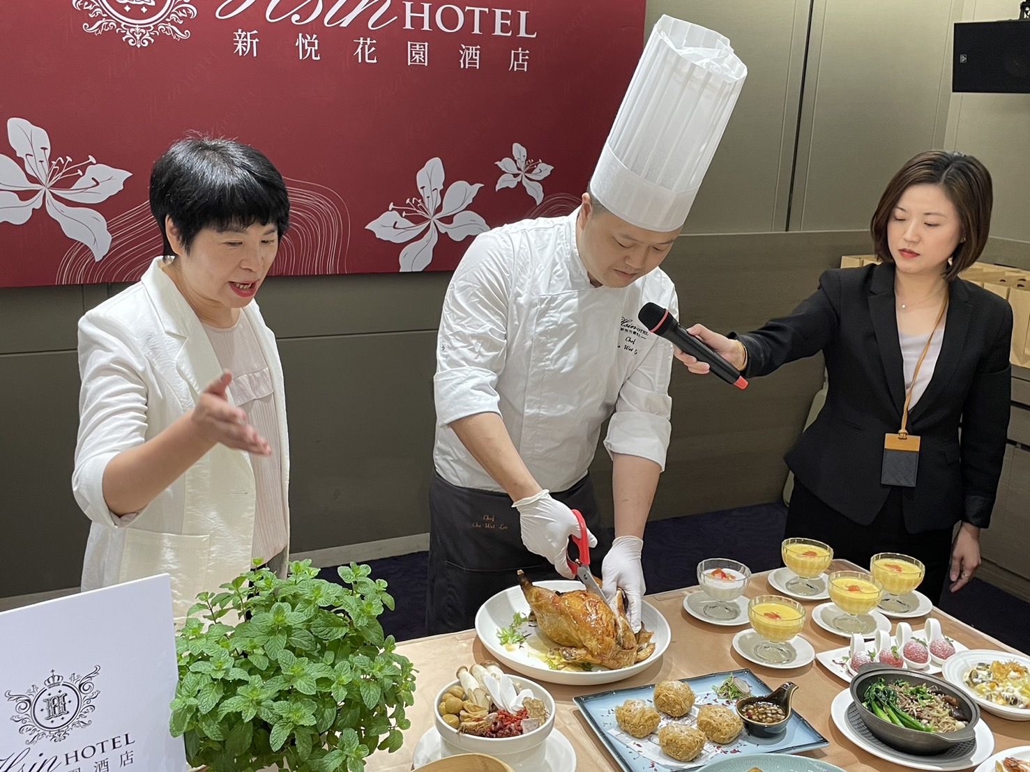 新悦花園酒店推出復刻版的「懷舊薄荷雞4人套餐」,活動優惠價$3680元,另有「新悦櫻桃片皮鴨4人套餐」可選擇,限週一至週四使用,須事先預訂,套餐餐點內容,更因應懷舊風潮,結合在地食材順勢推出多道港式經典料理,懷舊香酥炸荔茸,蔗糖香煎馬蹄糕,因製作工序繁雜,已很鮮少餐廳製作銷售,其中更是推出菜單上沒有的隱藏料理─鮮果杏仁凍豆腐,邀請大家回嘉旅遊品嘗出了嘉義縣市就吃不到的料理,用嘉義限定在地美食,感受嘉義這片土地的人情味。