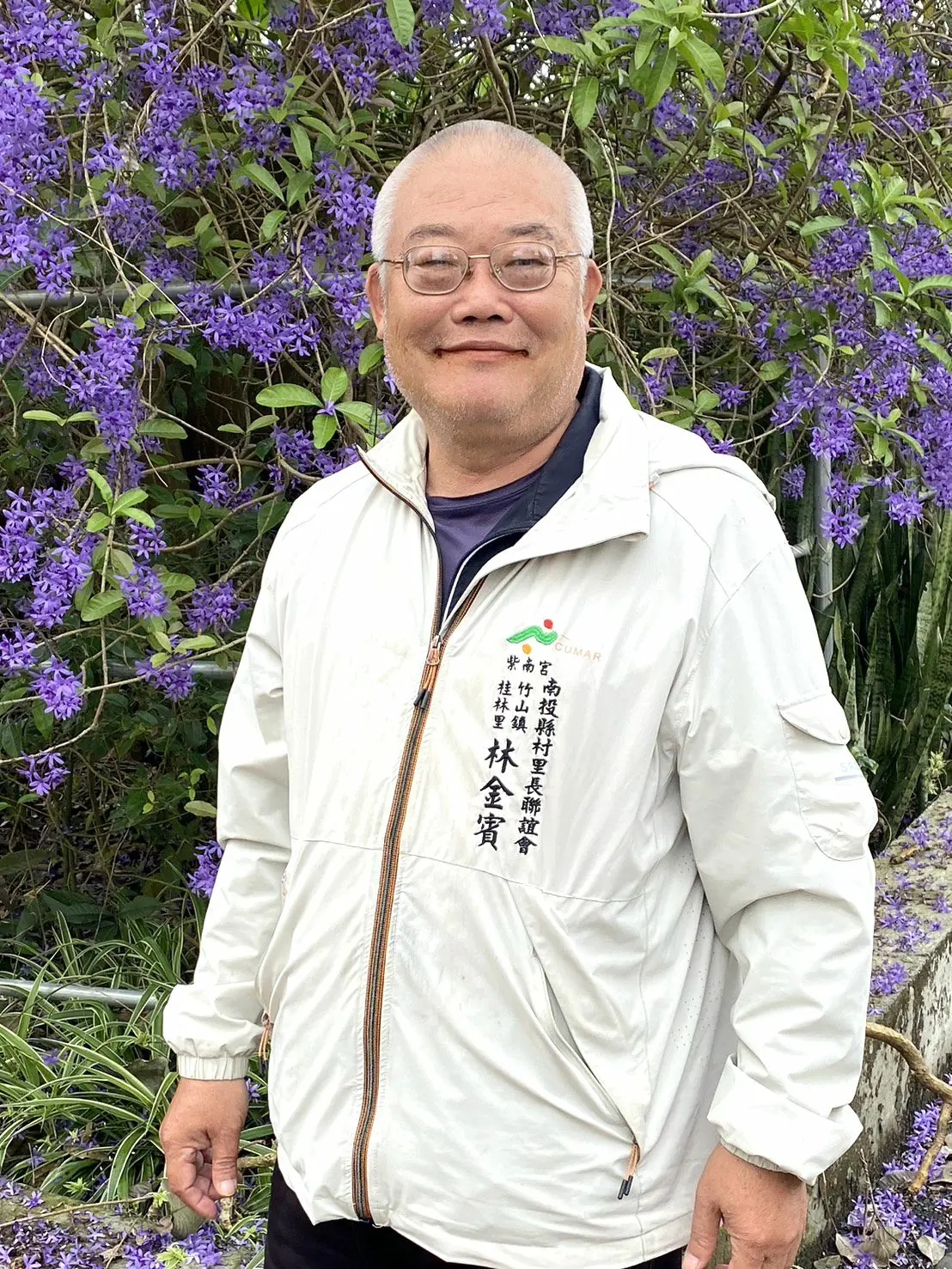 竹山鎮桂林里辦公處,四週有三十多株錫葉藤,花開得好美麗啊,亦就是里長林金賓(見圖,本報記者陳美杏拍攝)與里長林金賓夫人其愛妻阮皇秀(72年次)平日所撥下種子,細心照顧,以致於年年這個時機,花開盛景,今年更盛以往,花朵十分艷麗,就像里長與里長夫人一樣,里政輝煌,政通人和。(見圖)