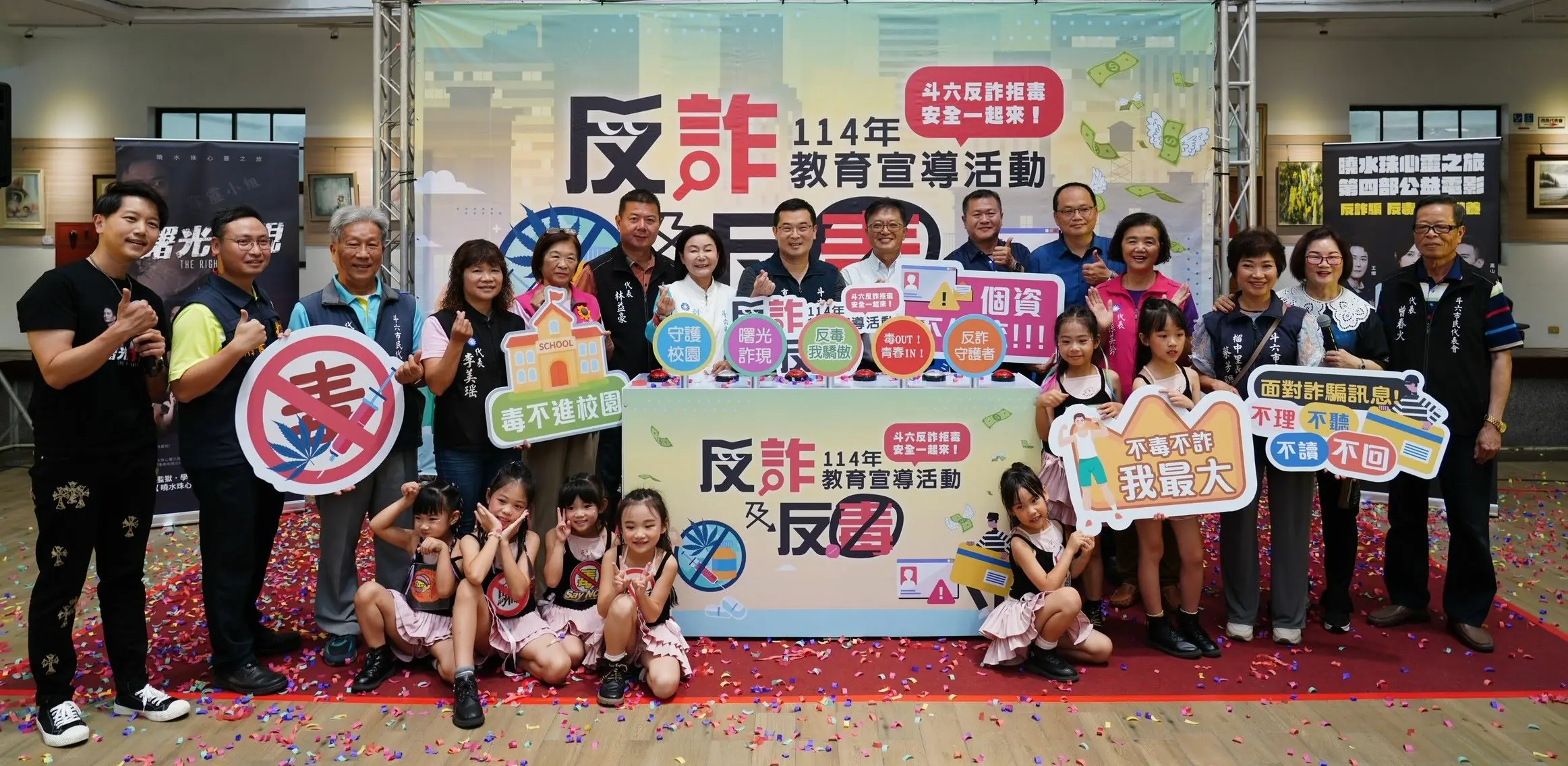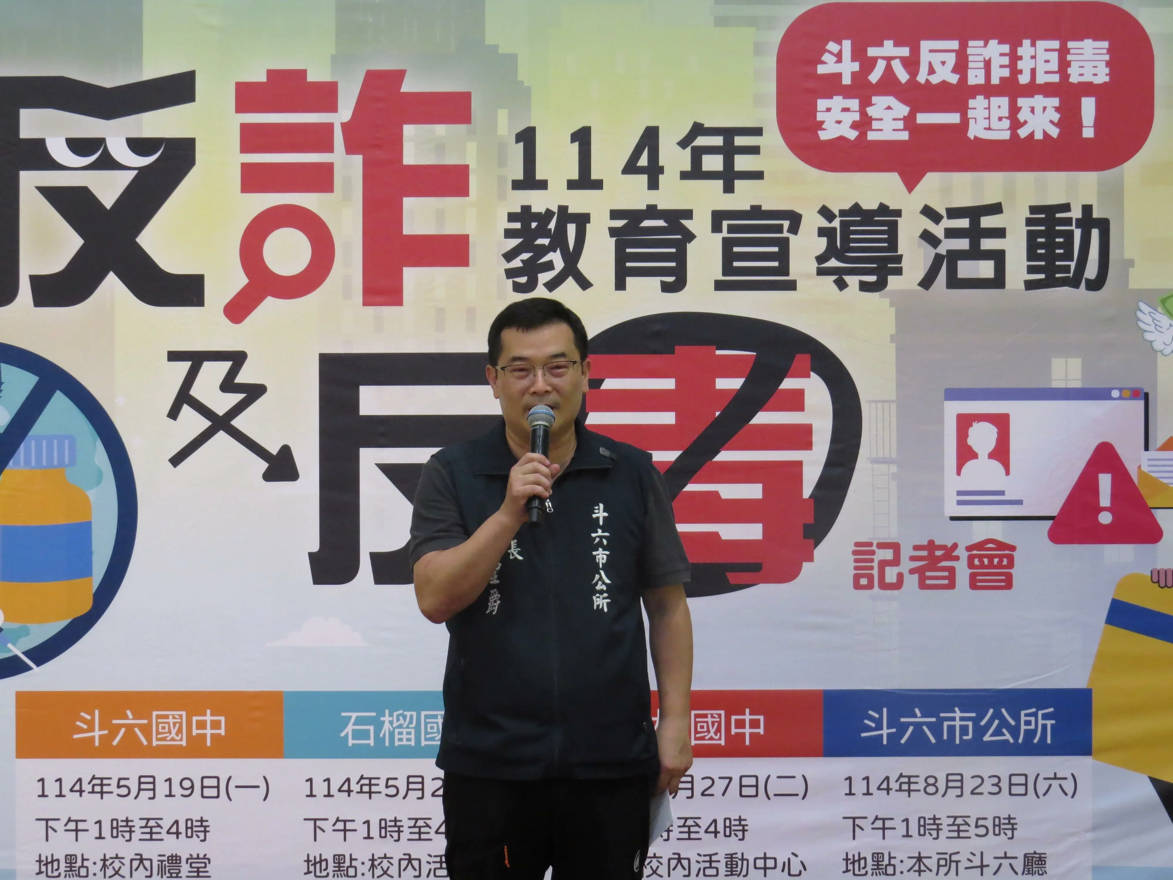 林市長強調,除了5月份的三場校園公益電影宣導之外,市公所將於8月23日在斗六廳舉辦大型反詐拒毒宣導表演,包括有軍中情人方季惟、以及王中平、馬國畢、高山峰、高欣欣、張世賢……等多位知名藝人帶來結合活動主題的精采演出,透過真實的故事分享與生動的情境演繹,讓反詐拒毒觀念更深入人心,共同傳遞防範詐騙與遠離毒品之重要性。