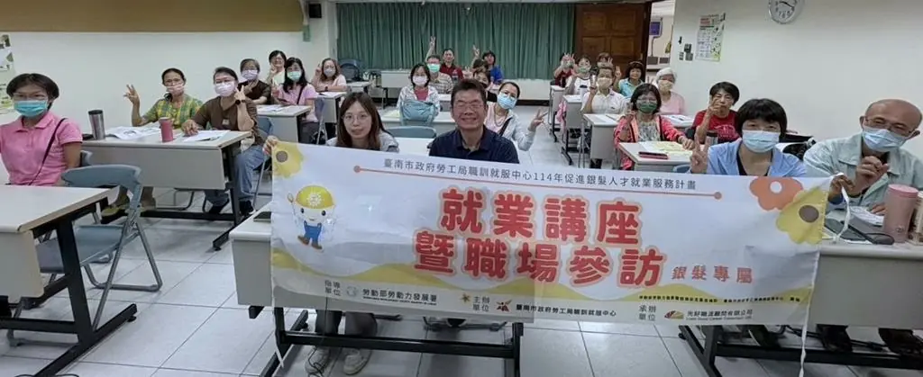 勞工局職訓就服中心主任梁偉玲指出,南市銀髮人才服務據點將持續辦理就促講座、職場參訪及徵才系列活動,另也預告8月7日將辦理就業促進講座暨職場參訪活動,歡迎民眾踴躍參加。