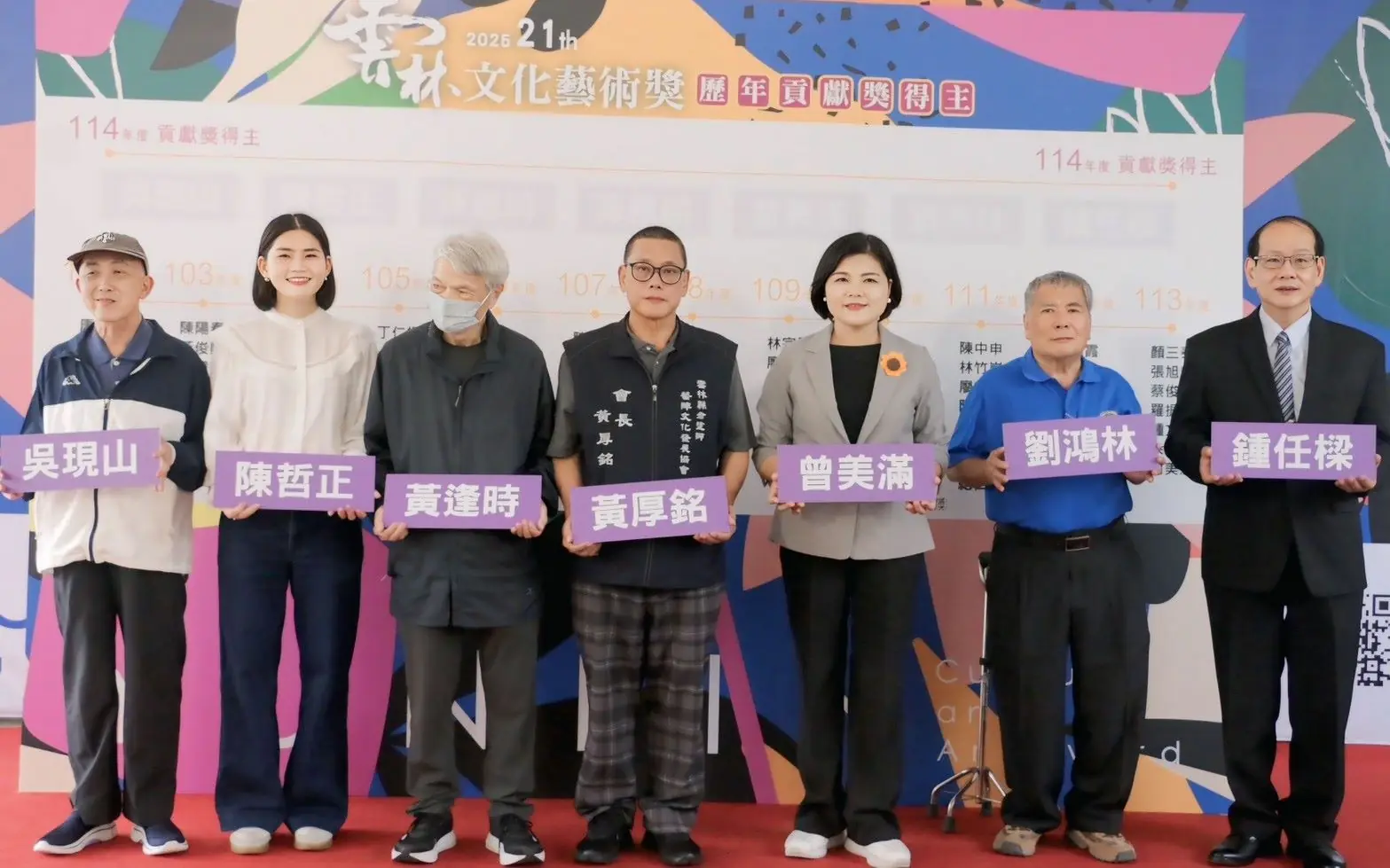 張麗善縣長指出,雲林文化藝術獎被譽為藝文界的奧斯卡獎,114年(第21屆)文化藝術貢獻獎得主日前揭曉,分別為:新興閣掌中劇團鍾任樑團長、霹靂國際多媒體戲劇黃逢時顧問、北港樂團團長陳哲正老師、旭陽民俗車鼓劇團團長吳現山老師、台灣文學創作者曾美滿老師、雲林「白鶴獅陣」保存者黃厚銘老師、傳統木作工藝劉鴻林司阜等7位。