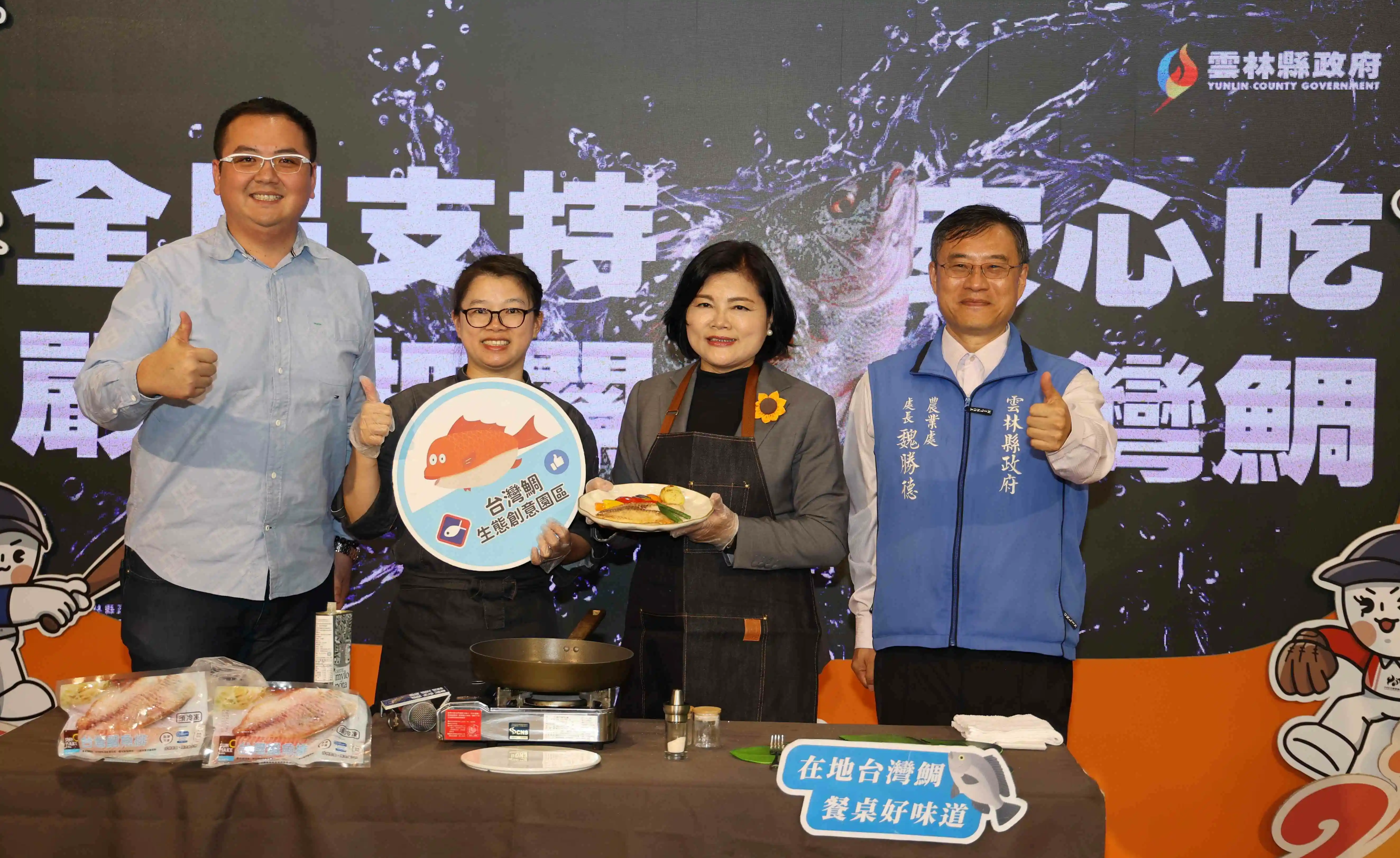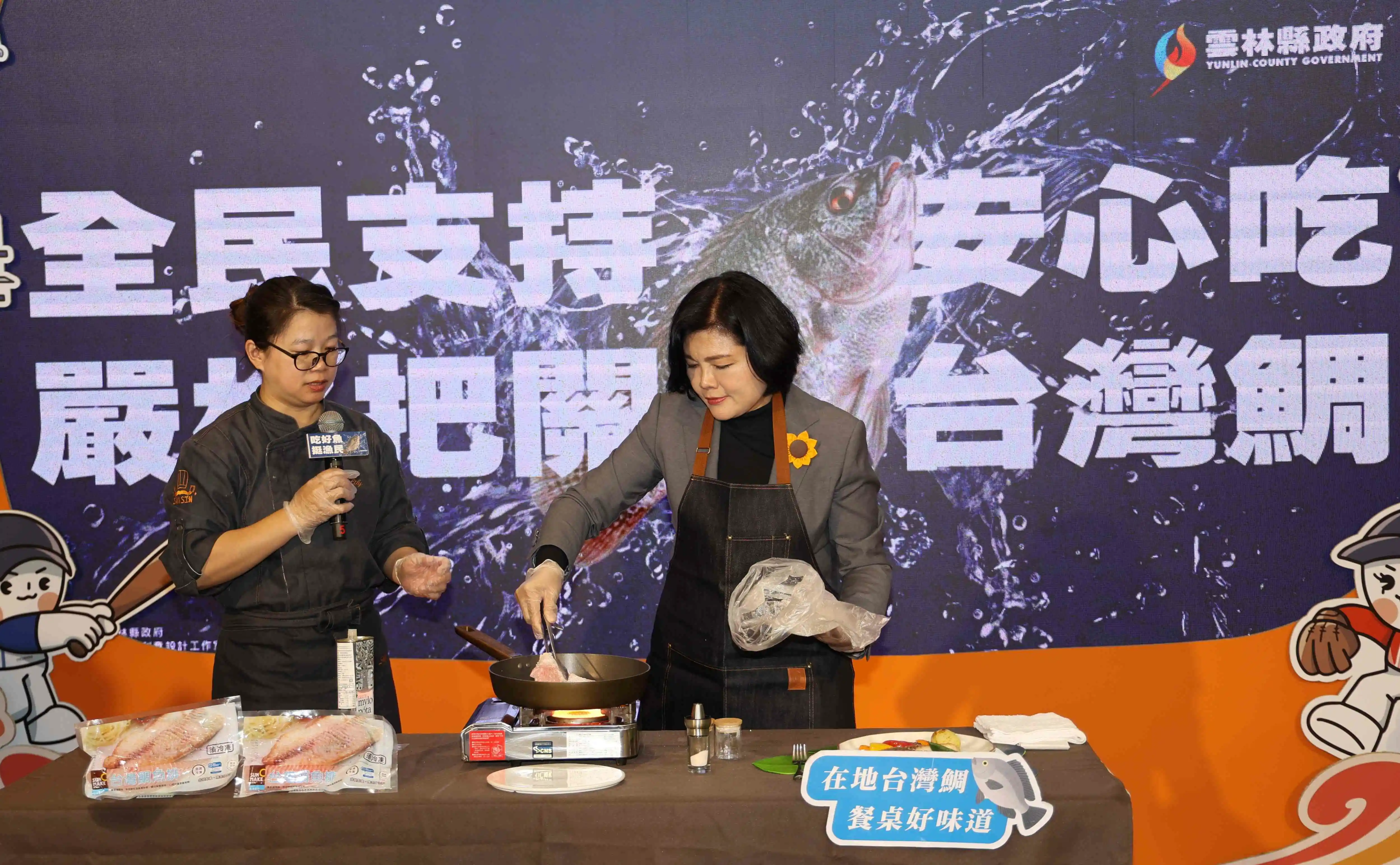 雲林縣政府為重新喚起消費者對台灣鯛的信賴與熱愛,昨天下午特別舉辦一場以台灣鯛為主角的美食饗宴,推出包括黃金生態魚、招牌鯛魚時蔬羹、鯛海之味拉麵、大阪鯛魚燒披薩、海味三寶QQ凍、鯛魚小島燒等六道創新料理,縣長張麗善偕同農業處長魏勝德、新聞處長陳其育重申縣府對食安嚴格的守護,以重振台灣鯛品牌聲譽,呼籲全民支持安心吃。