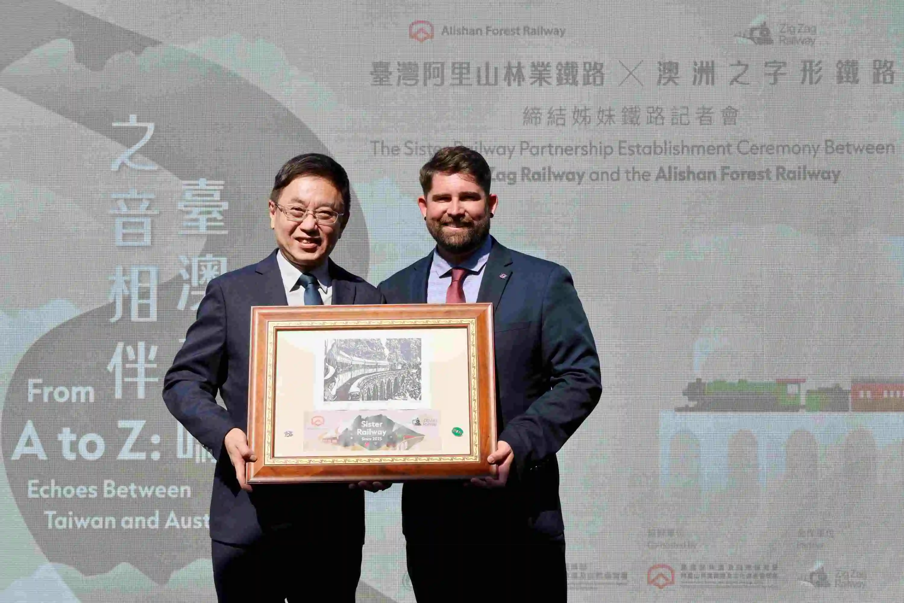 【記者張文一嘉義報導】兩條同以「之」字形路線聞名的百年產業鐵路,阿里山林業鐵路與澳洲新南威爾斯州的之字形鐵路(Zig Zag Railway)(9)日在阿里山林鐵北門驛締結為姊妹鐵路,不僅見證了臺澳雙方以智慧克服地形限制、與山林共生的精神,更是將阿里山林業鐵路的國際合作網絡首度擴展至大洋洲,為全球遺產鐵路保存與永續樹立新里程碑。