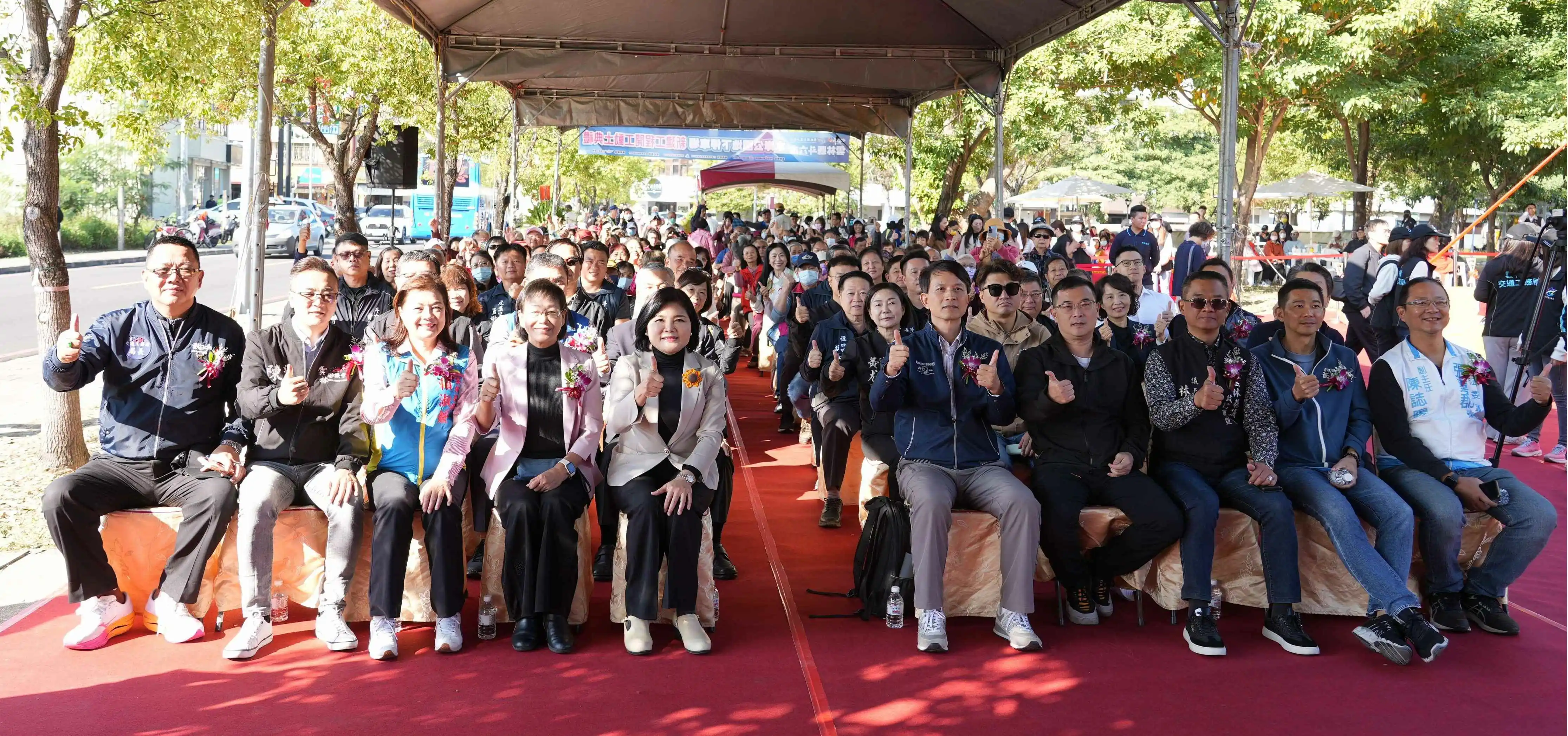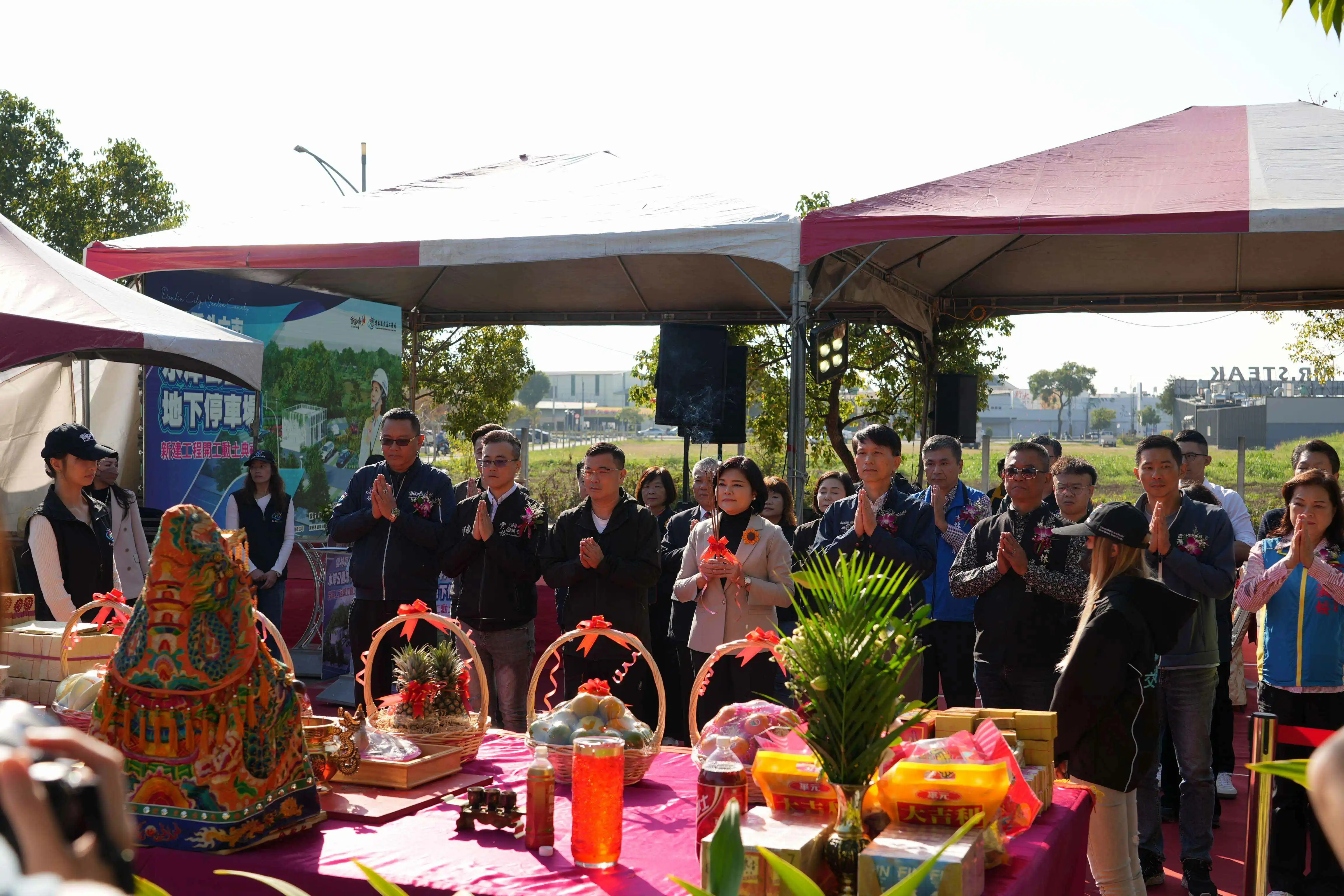 雲林縣長張麗善、副縣長謝淑亞、斗六市長林聖爵等人,共同主持「社口水岸公園新建地下停車場」開工動土典禮 (黃金郎攝)