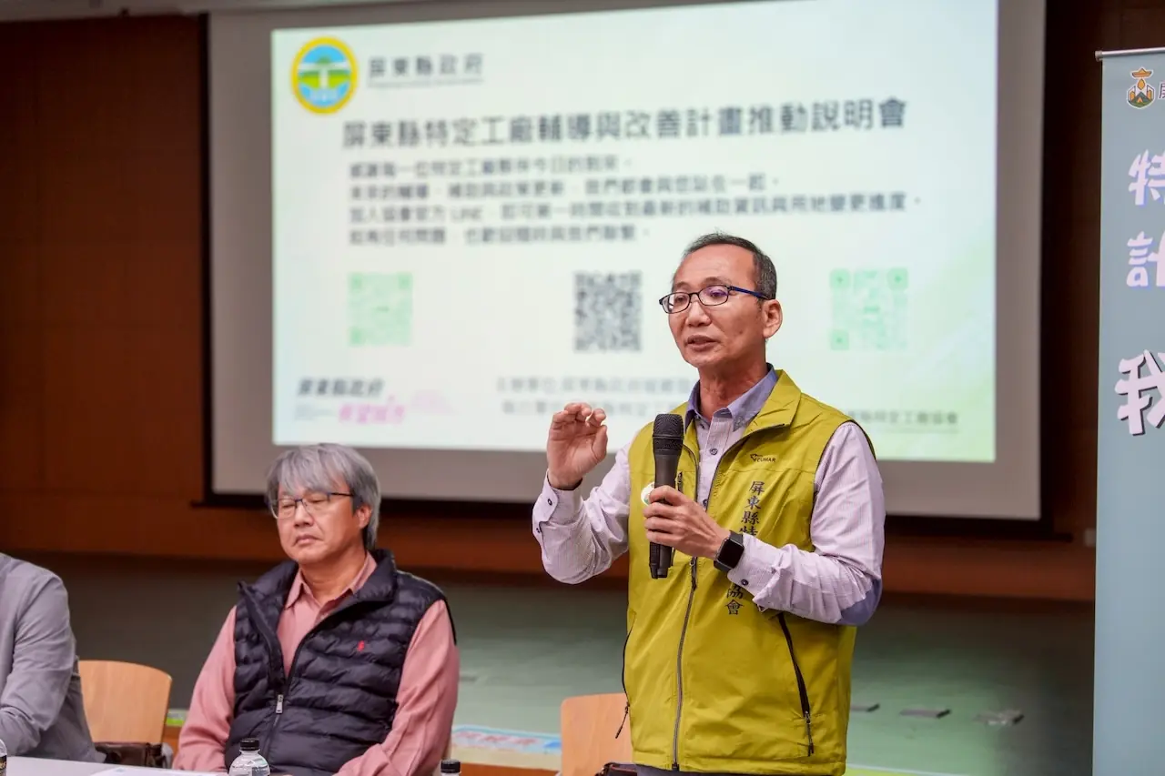 屏東縣政府城鄉發展處工商科科長林士弘、屏東縣特定工廠協會理事長黃智秀、特定工廠協會顧問、都市計劃規劃師蔡嘉昌、經濟部用地計劃輔導專家建築師陳俊達等人也出席會議,前工商科科長許文祈對於政府的政策與如何取得証明的相關行政流程十分熟悉,亦以其豐富經驗向業者說明。