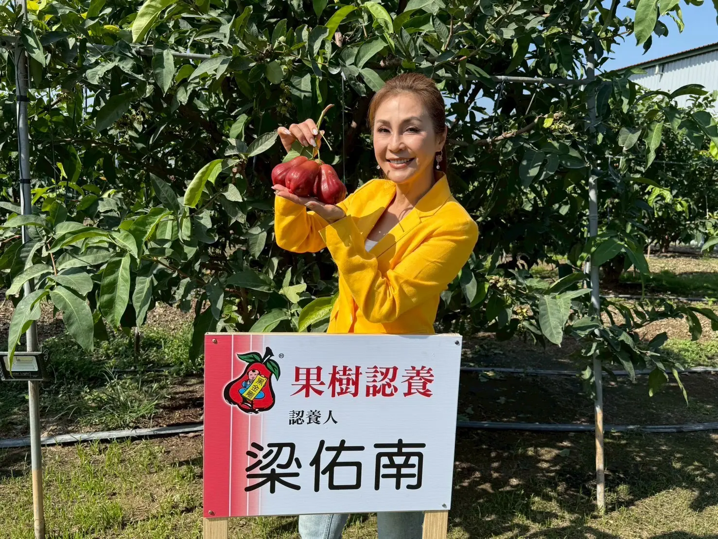 今(15)日,藝人梁佑南、鍾天特地南下屏東里港,與王瑞雄先生、創世屏東院院長林湘華在蓮霧園中為蓮霧著上自己喜歡的顏色。