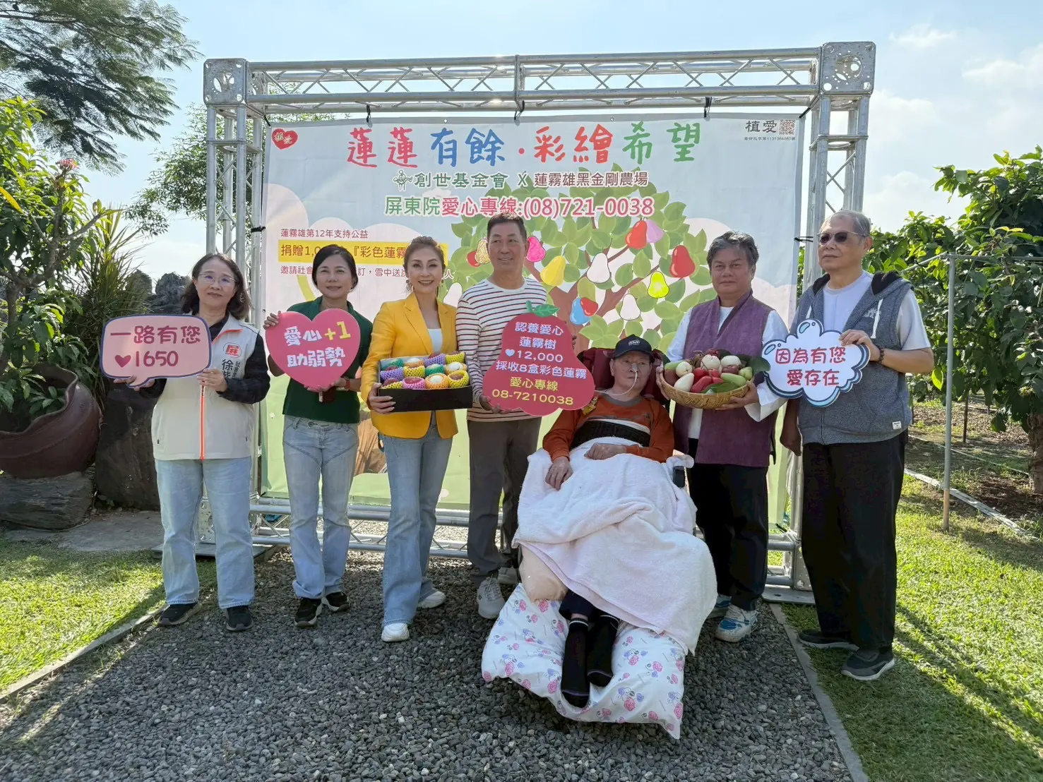 王瑞雄先生表示自己務農一輩子,照顧植物人就跟種植果樹一樣,都要細心且有耐心才能持續下去。希望有能力者都能透過不同的方式,幫忙照顧植物人,所以就把自己最驕傲的珍貴蓮霧捐贈出來,但需要有人購買,或是捐款認養「愛心蓮霧樹」,才能變成助人的力量。創世屏東院院長林湘華感謝蓮霧雄黑金剛農場長期的支持,每一盒蓮霧都是幫助植物人安養,讓家屬喘息的力量。