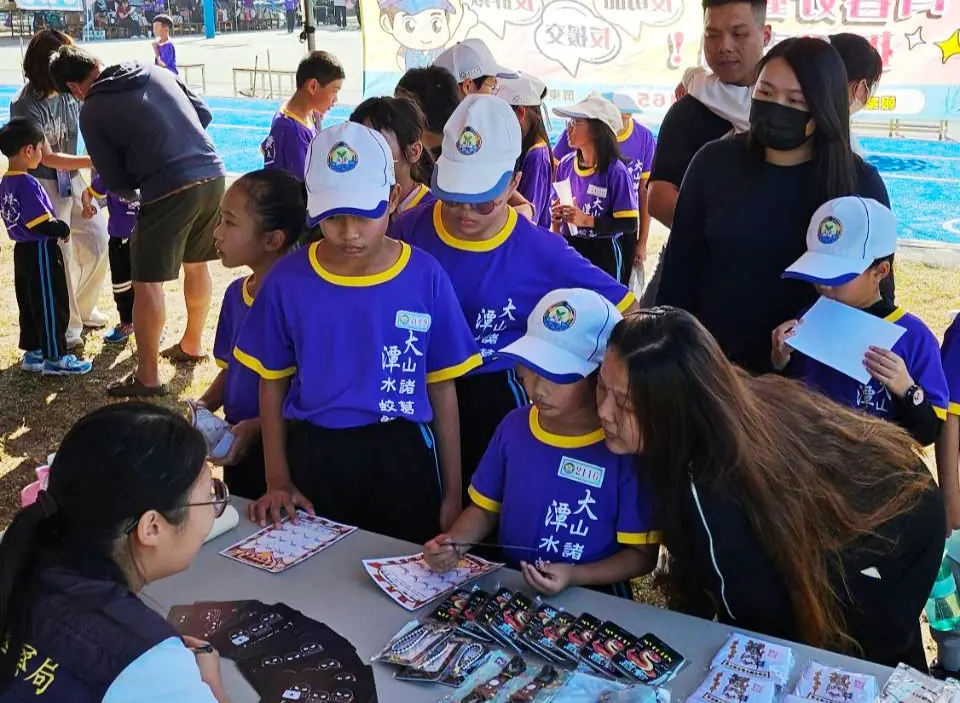 【記者廖銘瑞/屏東報導】大潭國小於13日舉辦校慶系列活動,特別結合東港警分局犯罪預防宣導團隊設置關卡,運用情境卡片讓學童自由抽取,並閱讀內容進行講解及提問,讓學童學習有關反詐騙、婦幼安全等相關知識,現場亦準備多項獎品獎勵闖關成功者,現場互動熱絡。