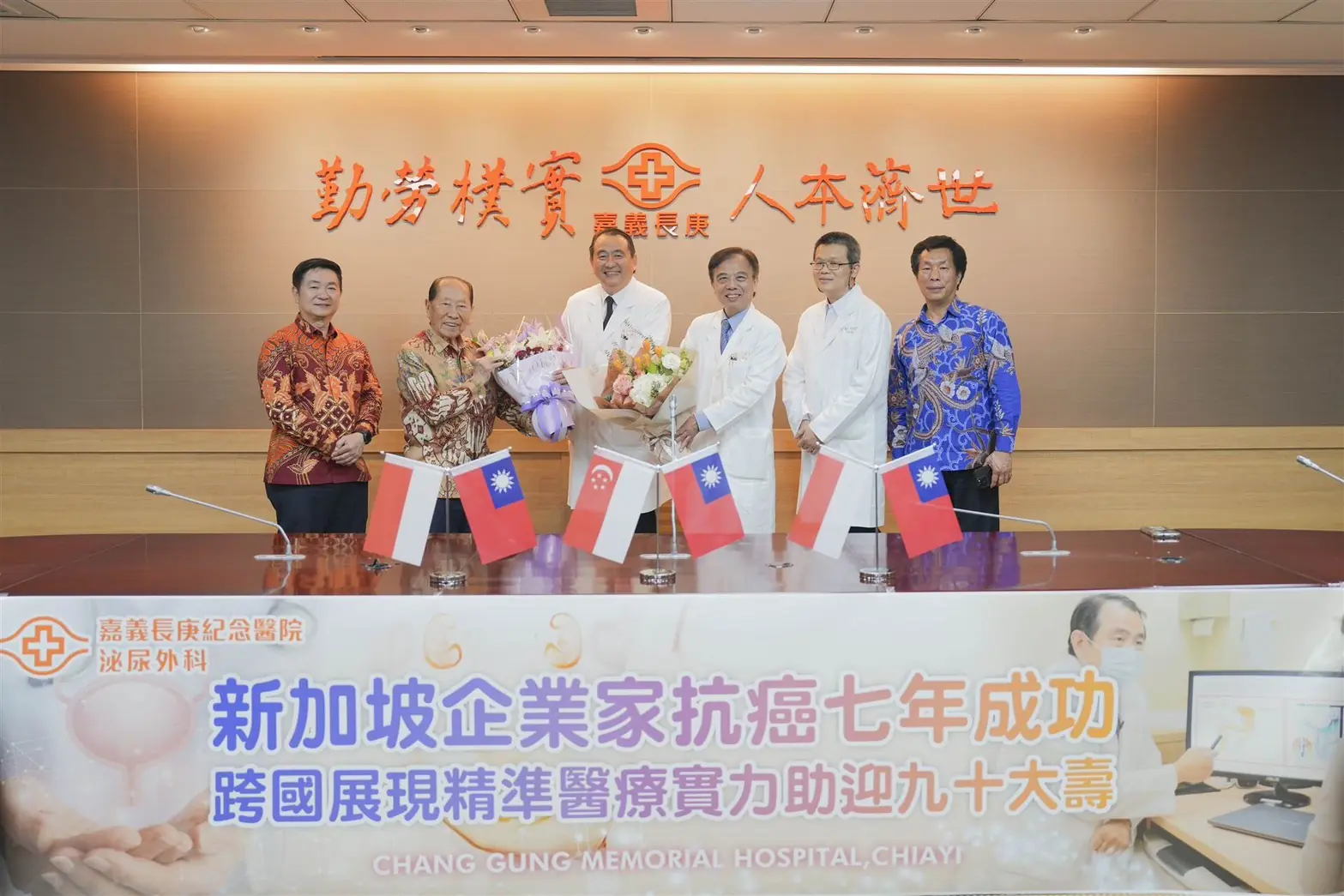 【記者張文一嘉義報導】嘉義長庚紀念醫院十七日舉辦國際醫療成果記者會,分享跨國精準醫療成功個案。病人是來自新加坡、長年於印尼經商的華人企業家魏先生,七年前確診晚期攝護腺癌,經嘉義長庚醫療團隊迅速診斷並量身規劃精準治療計畫,病情穩定控制至今,並於今年3月順利迎來90歲壽辰。魏先生偕同近二十位家屬專程來台回訪嘉義長庚表達感謝。家屬表示,當年醫療團隊即時且專業的判斷與治療規劃,不僅穩定病情,也讓全家深刻感受到台灣醫療的專業與溫度,建立長達七年的跨國信任關係。