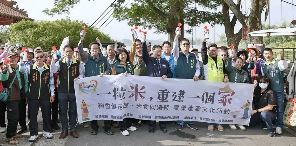 【記者黃潔台南報導】「2025臺南好米季『一粒米,重建一個家』-米香風華.社區韌性」健走巡禮活動21日於後壁小南海風景區熱鬧登場,吸引數百位民眾參與;市長黃偉哲與社會局長郭乃文、農業局長李芳林、後壁區長李至彬及後壁區農會總幹事林怡歆聯合揭幕,鼓勵民眾深入農村認識後壁在地風貌,增進對農村文化的認同與支持。