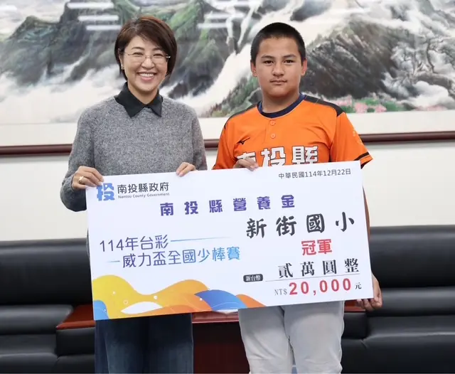 【記者陳美杏南投報導】南投縣以新街國小棒球隊為主體的代表隊在2025台彩威力盃全國少棒賽抱回冠軍獎盃,這不僅是該項賽事舉辦多年以來南投縣拿到的「第一座」冠軍,更寫下了南投少棒隊史的新紀錄,縣長許淑華(22)日在縣長室親自接見表揚,頒發獎狀及營養金嘉勉棒球隊傑出表現;