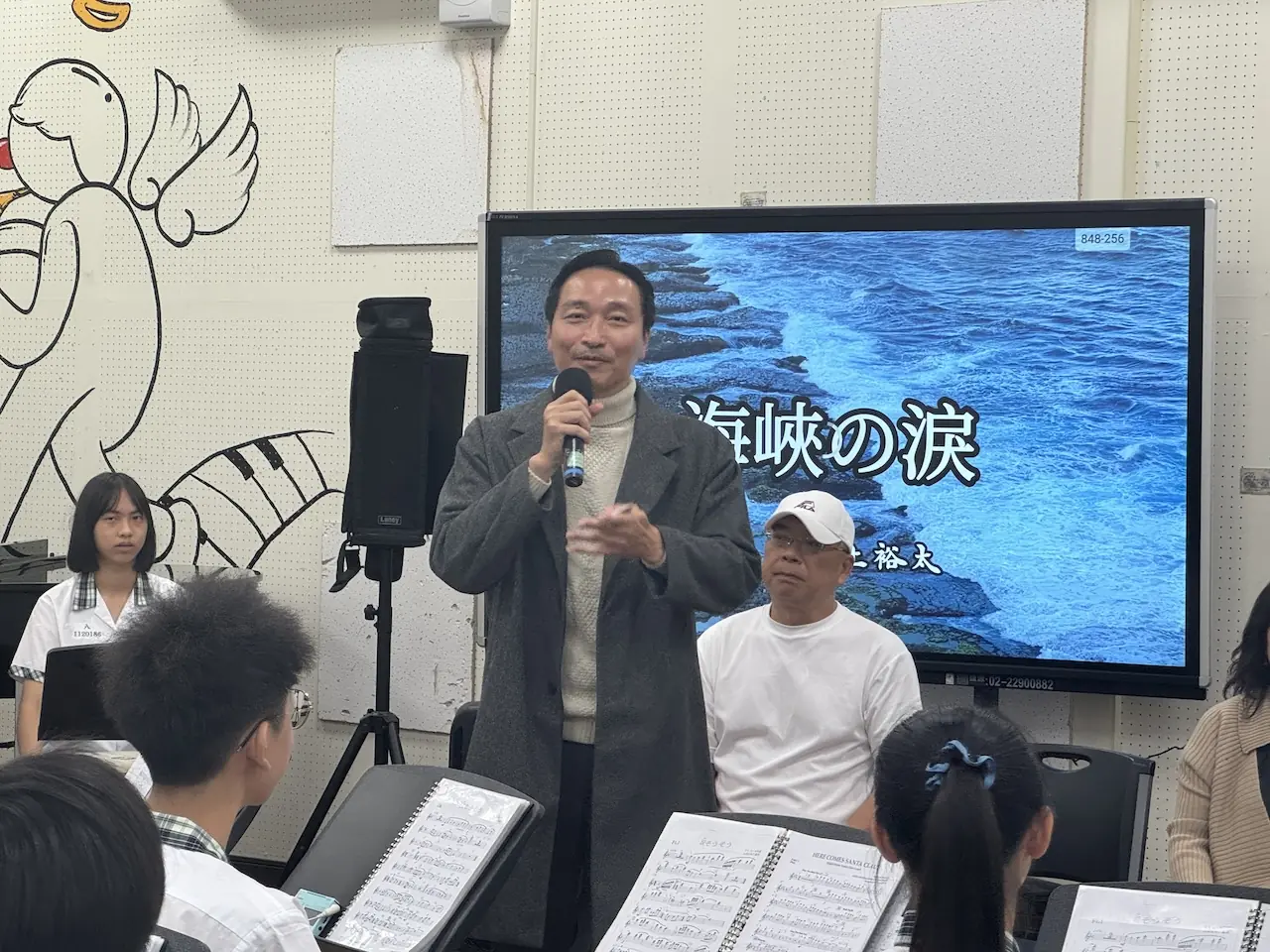 【記者梁秀瓊/屏東報導】日本弘前學院大學井上裕太博士,感動於恆春文史工作者念吉成電子書《巴士海峽海峽之淚》的故事,創作《海峽之淚》歌曲。大同高中管樂團今年7月赴日交流,兩國學生的歌聲感動在場的靜岡縣藤枝市來賓;井上裕太26日拜訪大同高中,再次以音樂譜下兩國情誼。