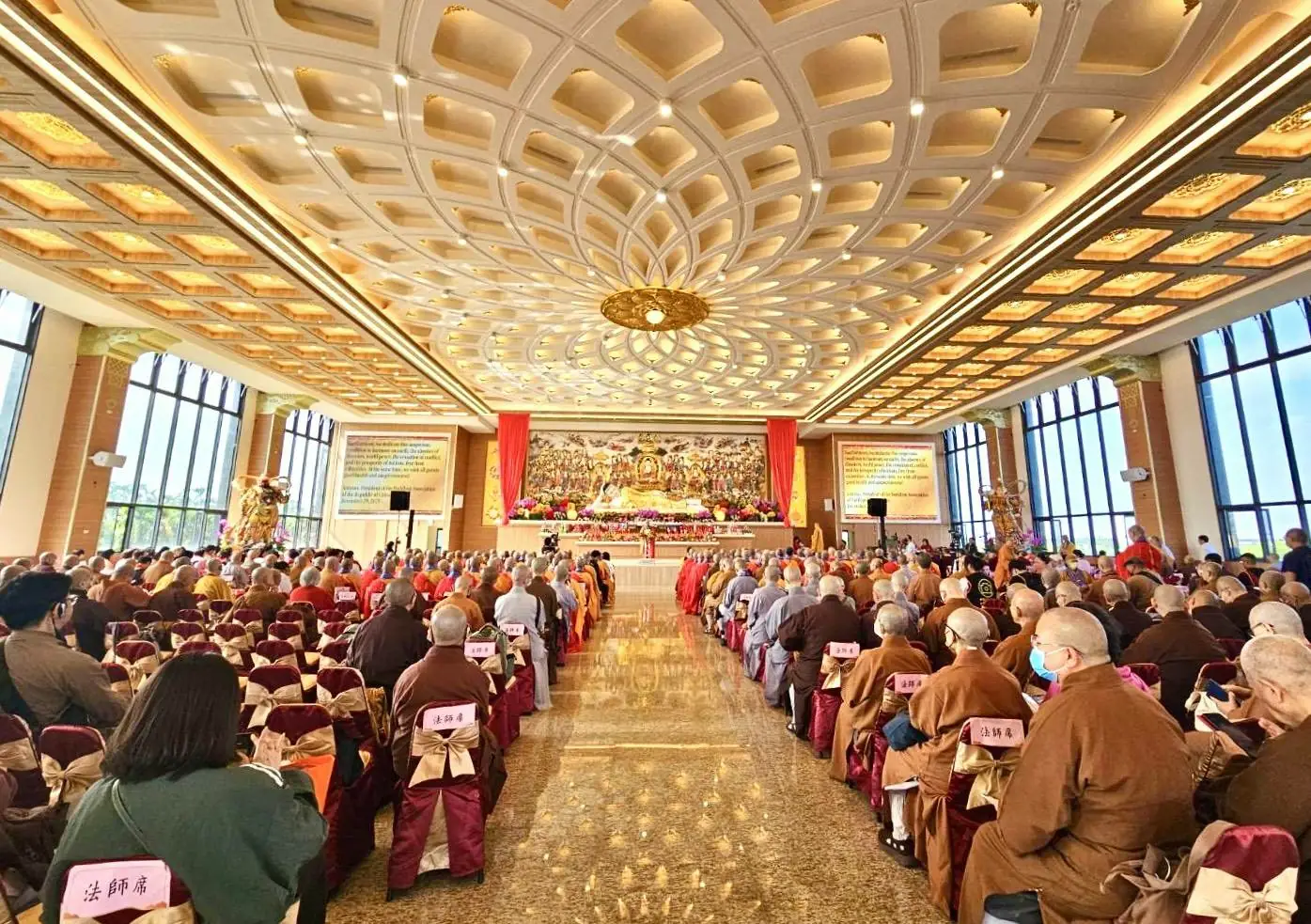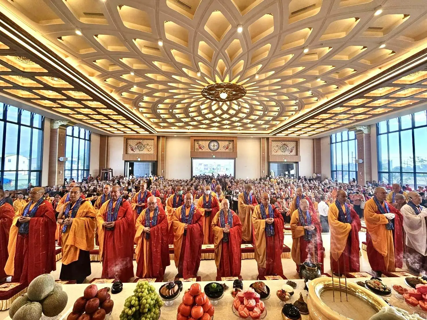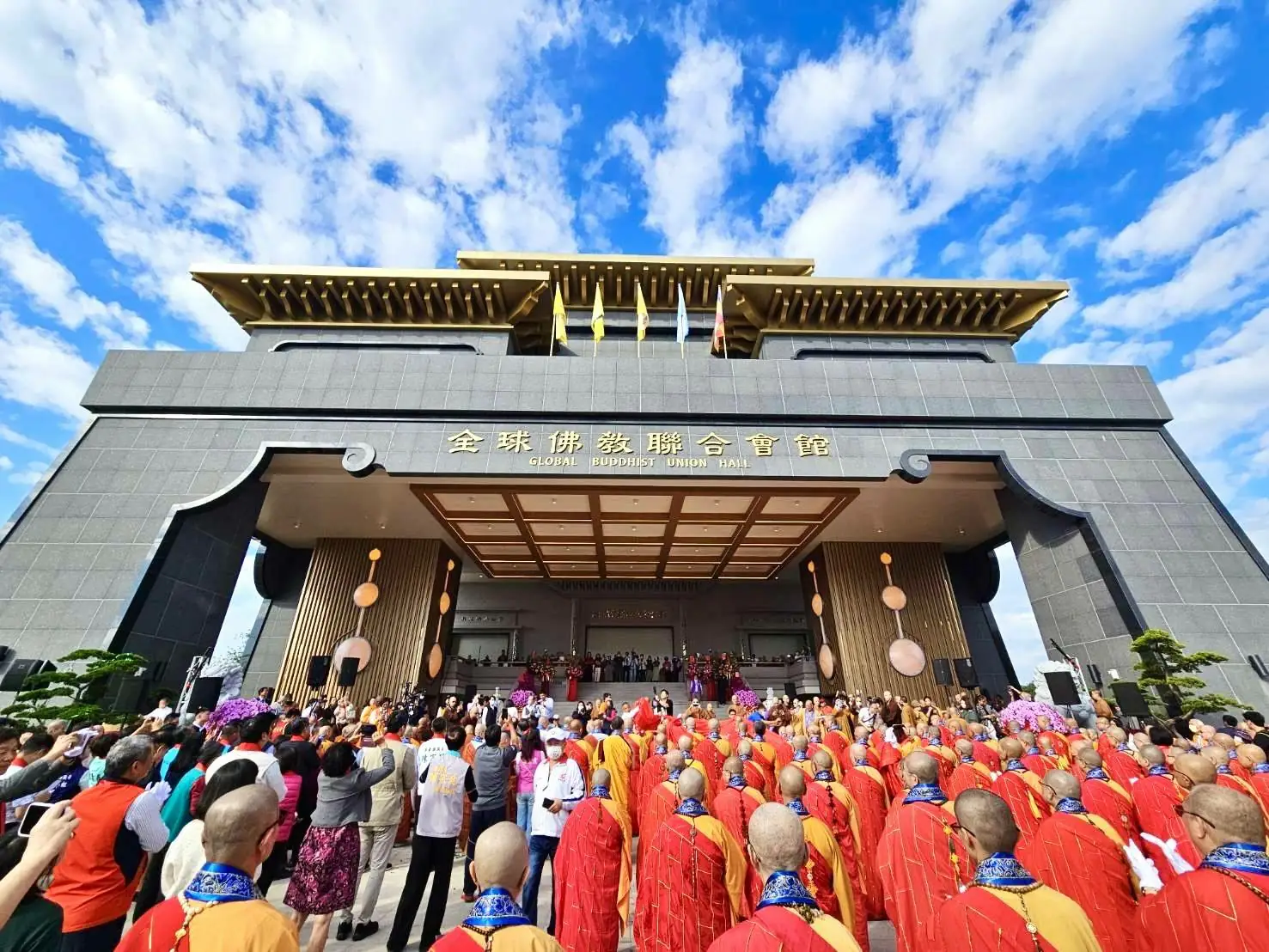今日大典流程隆重,包含無人機懸掛會旗進場、五百人剪綵、全球佛教聯合會館啟用揭幕、佛像開光揭聖幔等儀式,吸引五千人共襄盛舉,現場莊嚴肅穆又熱鬧非凡,與會者同霑法喜。本次活動獲賴清德總統、蕭美琴副總統、行政院長卓榮泰致賀電祝賀;前副總統呂秀蓮、內政部長劉世芳、前立法院長王金平及屏東縣長周春米皆親臨現場表達祝賀。宗教界方面,佛光山、法鼓山、中台禪寺等代表亦到場參與,場面莊嚴隆重。