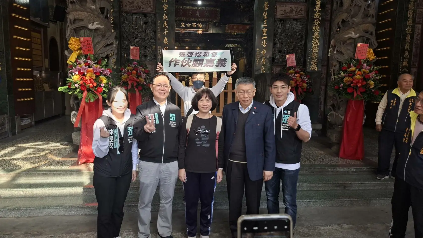 柯文哲抵嘉助陣張啓楷 寺廟參香、市場掃街搶人氣