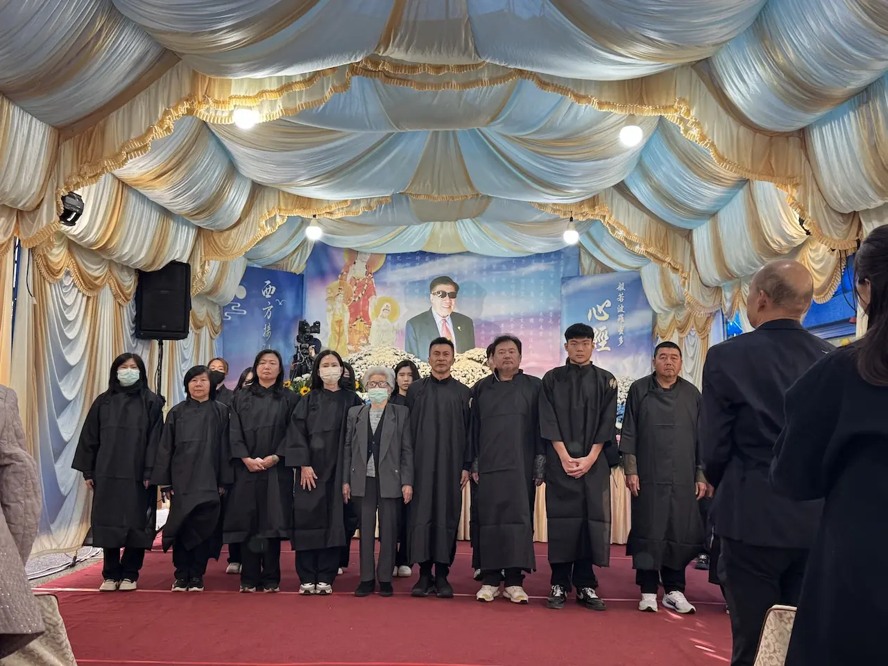 立法院長韓國瑜伉儷全程參與整個告別式,沒有離去,並不時慰問葉老先生的遺孀葉鄭美女士,關心、不捨之情,溢於言表。