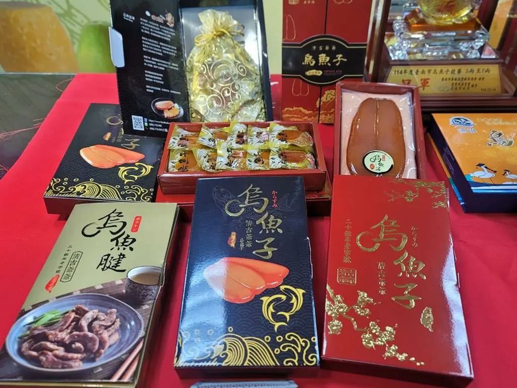 南市養殖漁業發展協會理事長王昌澔指出,丹娜絲颱風侵襲後,在政府輔導下漁民持續養殖懷有烏金的烏魚,除養殖技術熟練,並透過每年評選精進加工技術,以少鹽低納作法跟進口烏魚子做出區別,晶瑩剔透的烏魚子配上精緻包裝盒是送禮最佳選擇;他同時也分享選購優質烏魚子方式,先觀其色再聞其香及嚐其味,外型勻稱厚實、色澤澄紅偏褐,淡淡魚卵香氣迴繞,入口彈牙齒頰生香,用酒蒸煮後味道更佳。
