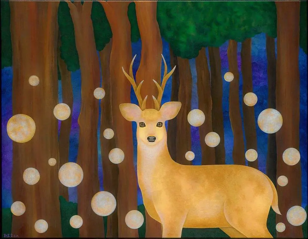 此次展覽由玲廊滿藝旗下藝術家郭家秀與趙書巧聯合展出。郭家秀創作以能量繪畫為核心,風格細膩流動,透過層層堆疊色彩與象徵性靈性意象,傳達療癒與接納的意象,其作品「靈鹿」象徵源頭之愛,回應對生命經驗的全然允許,引領觀者回到內在平衡;趙書巧則以溫暖富想像力敘事畫風著稱,融合童話感與夢境色彩,形塑純真而自由的視覺語言,其作品「讓愛飛翔」描繪仰望銀河的飛行獨角獸懷抱初心與勇氣,鼓勵人們勇敢追夢、不忘初衷。