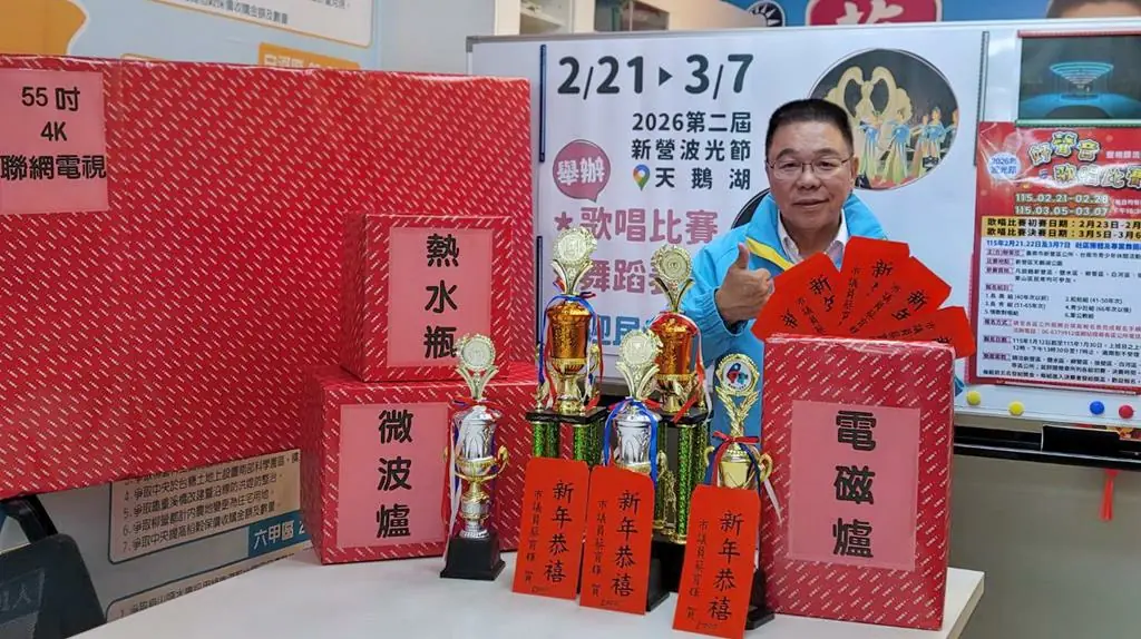 【記者黃潔台南報導】配合新營波光節舉辦的好聲音歌唱比賽成功吸引人潮,帶動天鵝湖遊客群及臺南市溪北觀光量能,「2026年波光節好聲音歌唱比賽暨舞蹈表演秀」將於2月21日起閃亮登場,現正受理報名中;長期行銷大新營及大力支持此活動的市議員蔡育輝再次籌募總價值百萬元以上共1200多項獎品,另也串連關心地方發展人士和行政單位,準備各區農特產品特賣、雞蛋、番茄、肉包等美食品嚐、歌唱比賽舞蹈表演秀、配合天鵝湖波光瀲豔、色彩繽紛的光影變化,期能吸引更多民眾到新營天鵝賞遊歡度春節假期。