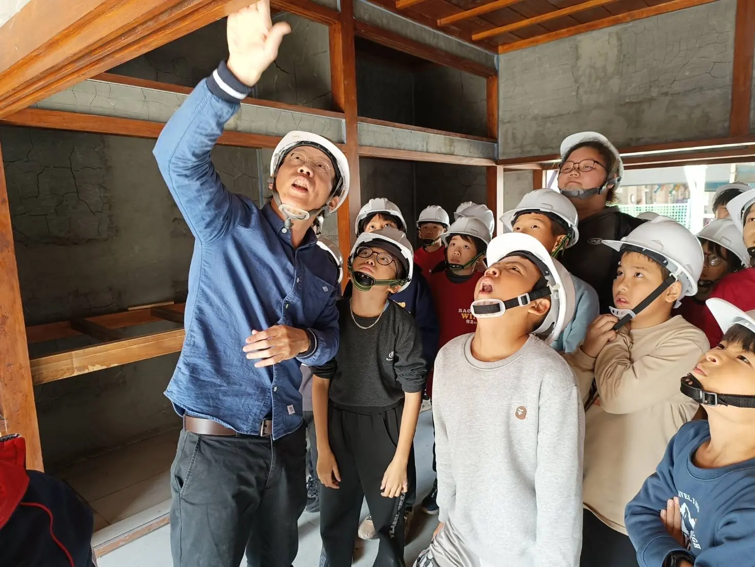 莿桐饒平國小舊宿舍修復工地展,透過建築師導覽展現修復過程,讓師生更認識學校的歷史建築