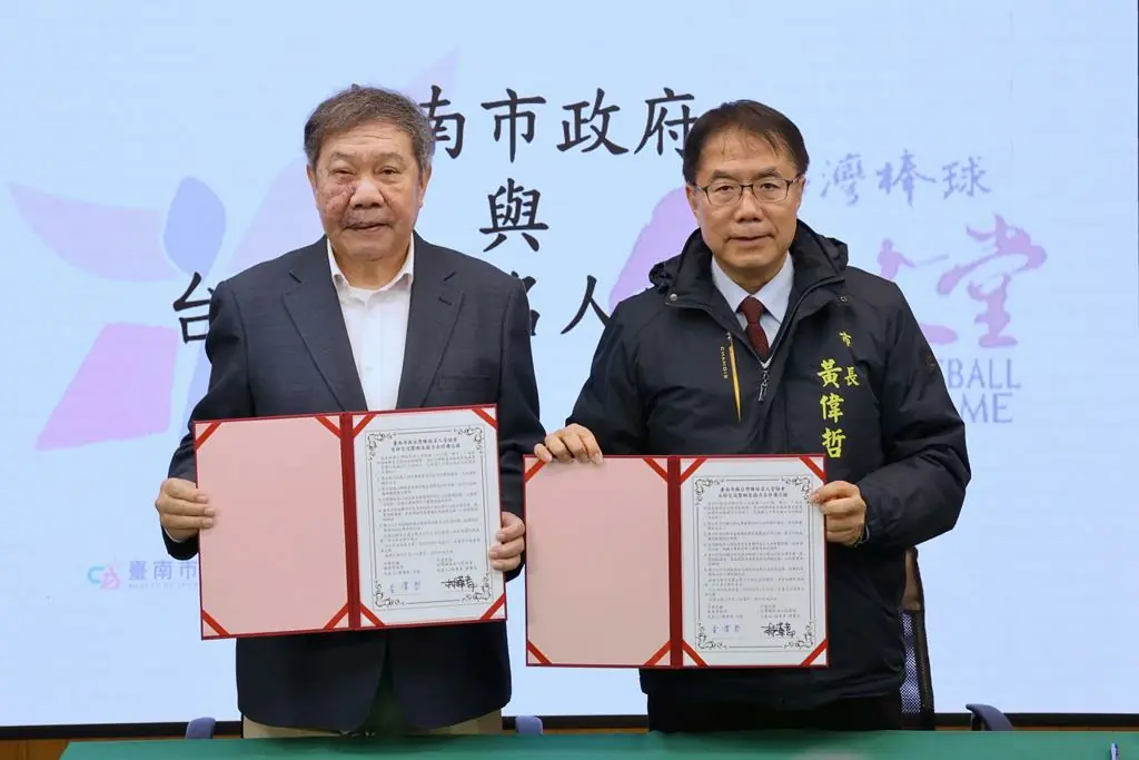 【記者黃潔台南報導】為深化棒球文化保存與推廣,臺南市長黃偉哲22日與台灣棒球名人堂協會理事長林華韋代表簽署合作備忘錄,雙方將共同辦理「臺南棒球歷史展覽」,並於亞太棒球訓練中心設立棒球名人堂,攜手推動地方棒球文化傳承。