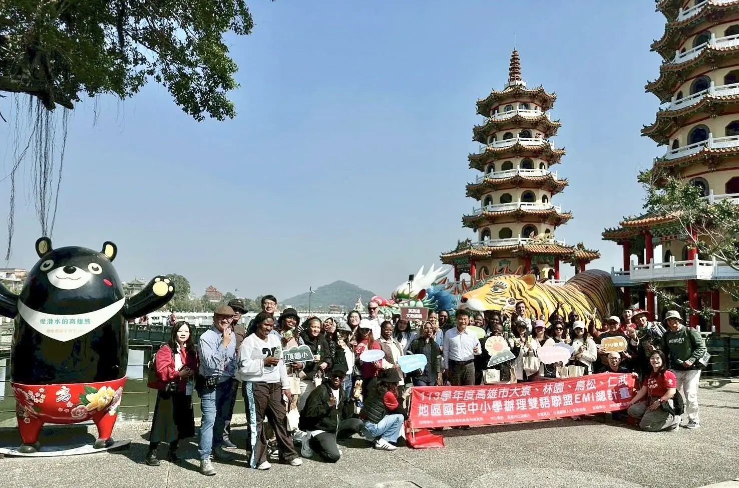 活動以左營「見城之道」為起點,外師依序走訪小龜山環潭步道、龍虎塔、慈濟宮與北門等文化地標,透過在地文史工作者導覽,從歷史、宗教與城市發展角度,認識高雄舊城的文化脈絡。外師們沿途拍照、提問,記錄可運用於教學的情境素材。
