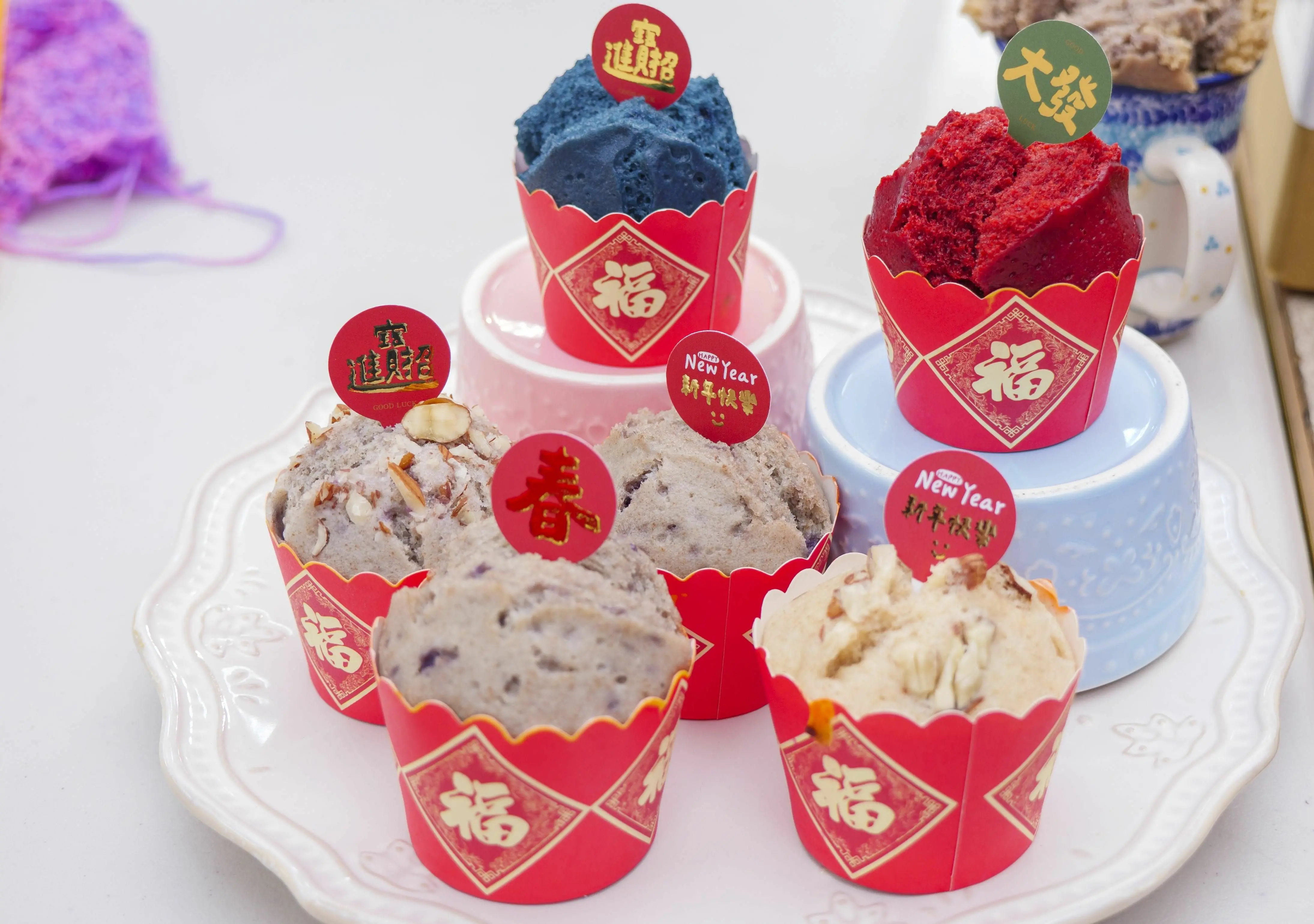 賴美娟強調,代糖入味,熱量輕盈,傳統發糕一個動輒200-300大卡,高纖發糕熱量僅約105大卡不到市售產品的一半,讓擔心發胖或需控糖的族群也能安心享用;五彩高纖發糕利用天然植物粉末調出五彩繽紛的色彩,視覺上宛如「中式馬芬」,象徵五福臨門、好運全方位。