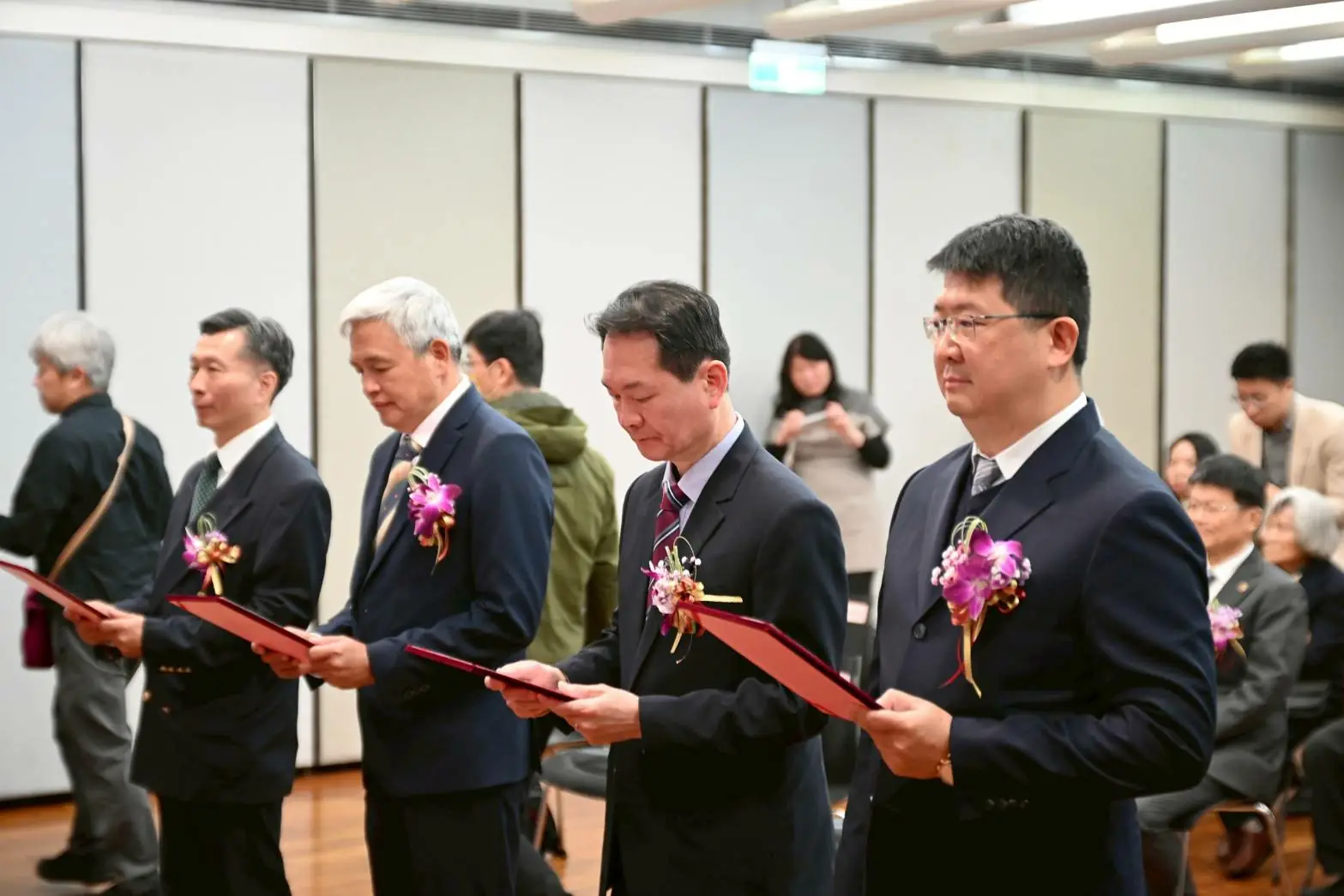 本次共有四所國立大學由新任校長宣示就任,除高科大校長吳忠信外,另包括臺北科技大學校長任貽均、澎湖科技大學校長李文熙及高雄餐旅大學校長方德隆;嘉義大學校長林翰謙則為續任。交接典禮流程簡要隆重,展現國立大學校務傳承的穩定與制度化。