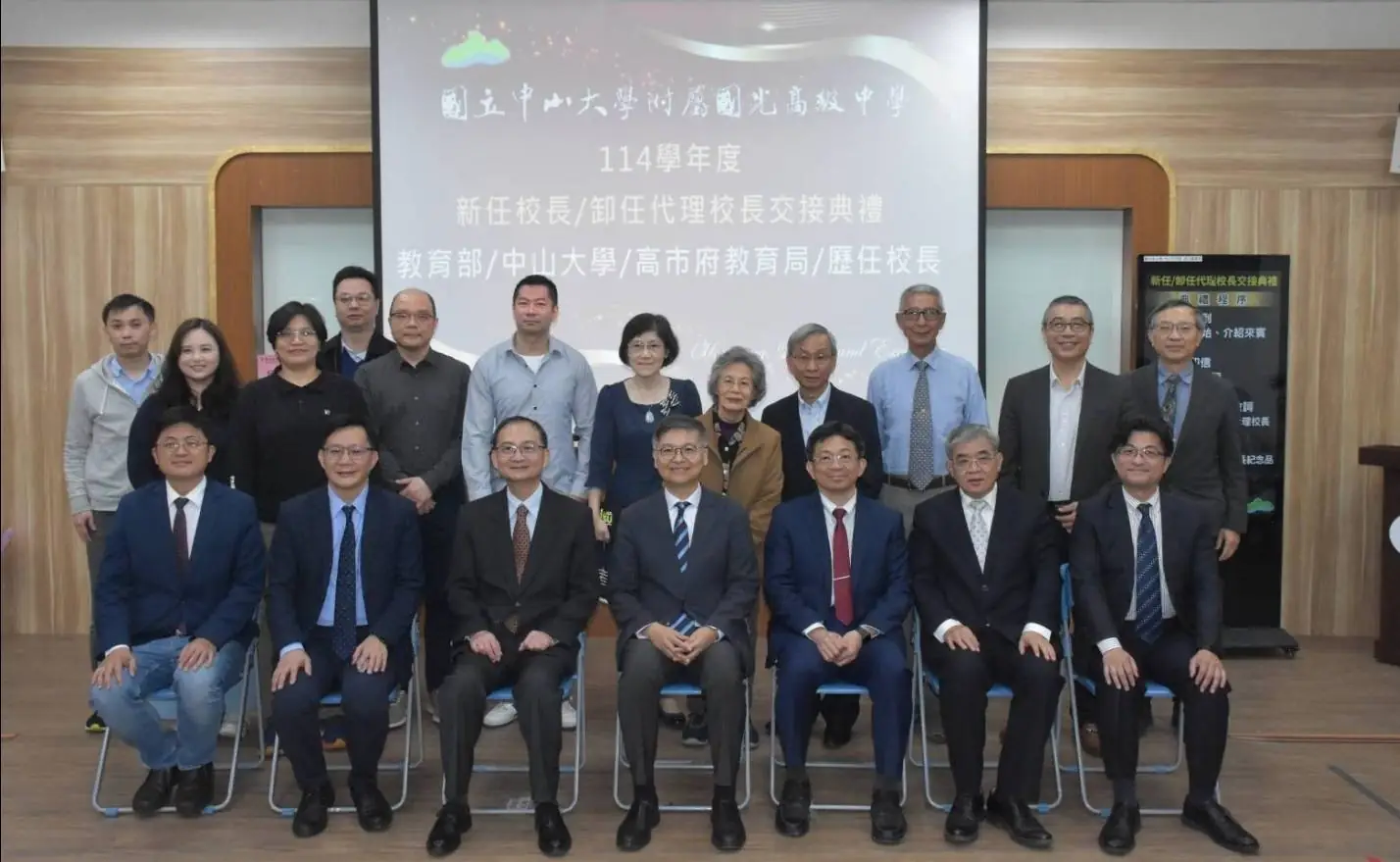 交接典禮中,教育部張廖萬堅次長、教育部主任秘書林伯樵、國立中山大學校長李志鵬,以及教育部前次長、亦為國光中學改制為中山大學附中首任校長的蔡清華等貴賓蒞臨,與全體師生、家長及校友共同參與,展現對學校發展的高度重視。