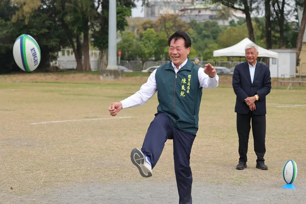 開幕儀式邀「鳳天神鼓」演出,以震撼人心鼓藝為選手注入士氣;體育局長陳良乾致贈各參賽隊伍紀念橄欖球,祝福選手在賽場上全力以赴、發揮最佳實力,同時與中華奧林匹克委員會副主席王景成、臺南市體育總會理事長吳志祥聯合主持開幕式,宣告第一屆府城盃國際青年七人制橄欖球邀請賽正式開打;開賽首日即有多場精彩對戰,表現令人印象深刻。