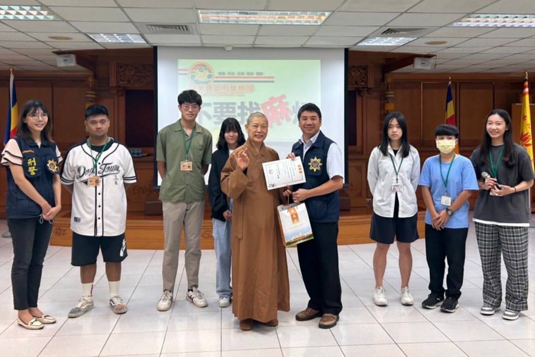 【記者廖銘瑞/屏東報導】 屏東縣政府警察局鑑於暑期到來,為讓學童遠離毒品荼害,特與佛光山屏東講堂合作,於7月6日藉由屏東講堂舉辦「2023年佛光兒童三好夏令營」活動期間,以「不要找麻煩」為主題,融入孩童喜愛的食品(如奶茶包、咖啡包、泡麵、跳跳糖、巧克力等)或逗留的場所(如電子遊藝場、網咖)議題,採互動式宣導方式,教導如何辨識毒品的「偽包裝」及不要因為好奇或他人慫恿或僥倖心理而誤用毒品,要勇敢說「不」,用堅定的心拒絕誘惑,避免遭受毒害。