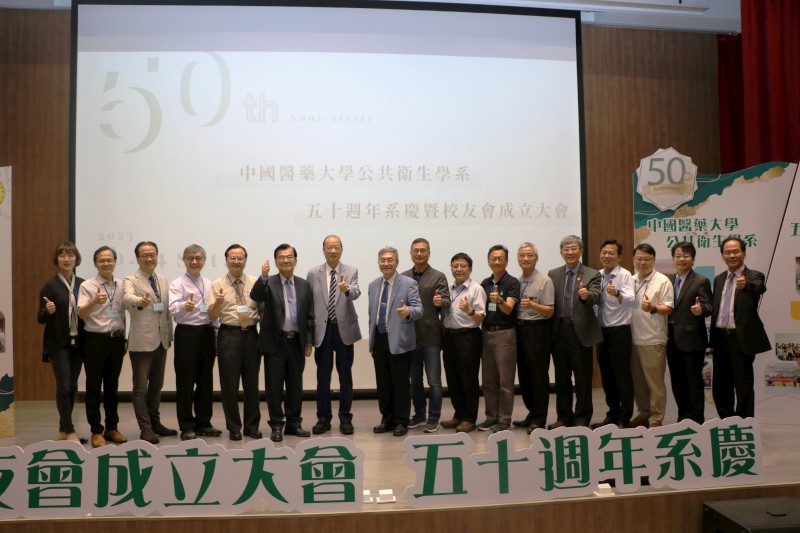 中國醫藥大學公共衛生學系50週年系慶暨系校友會成立大會,14日下午在水湳校本部卓越大樓國際會議廳舉行,風華五十、讓公衛人的精神繼續發揚傳承,真是喜上加喜;蔡長海董事長特別撥冗蒞臨會場祝賀,對於公衛學系不斷的成長與進步,培育優秀的公衛人才表示欣慰,稱許畢業校友們在健保、衛生行政、教育、醫院經營各專業領域有卓越貢獻,這是母校的光榮。