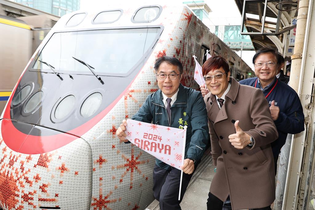 【記者黃潔台南報導】交通部觀光署與國營臺灣鐵路公司攜手合作的首部主題彩繪列車「SIRAYA西拉雅號」,23日於臺南火車站舉行啟航儀式,觀光署副署長林信任、臺鐵副總經理劉雙火、西拉雅管理處長徐振能、臺南市長黃偉哲及觀光旅遊局長林國華、外交部雲嘉南辦事處長蕭勝中及相關單位與民間產業代表均出席見證,歡迎國內外遊客搭乘西拉雅號來臺南欣賞台灣燈會及到南部景區體驗不同人文風情。