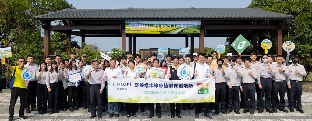【記者黃潔台南報導】響應環境永續理念及植樹月,奇美實業6日與農業部農田水利署嘉南管理處合作舉辦「嘉南大圳水圳綠道植樹養護計畫」,贊助認養嘉南大圳周邊植樹及養護,第一階段植樹總長度1.1公里,未來將以5年的時間種植超過500棵喬木。