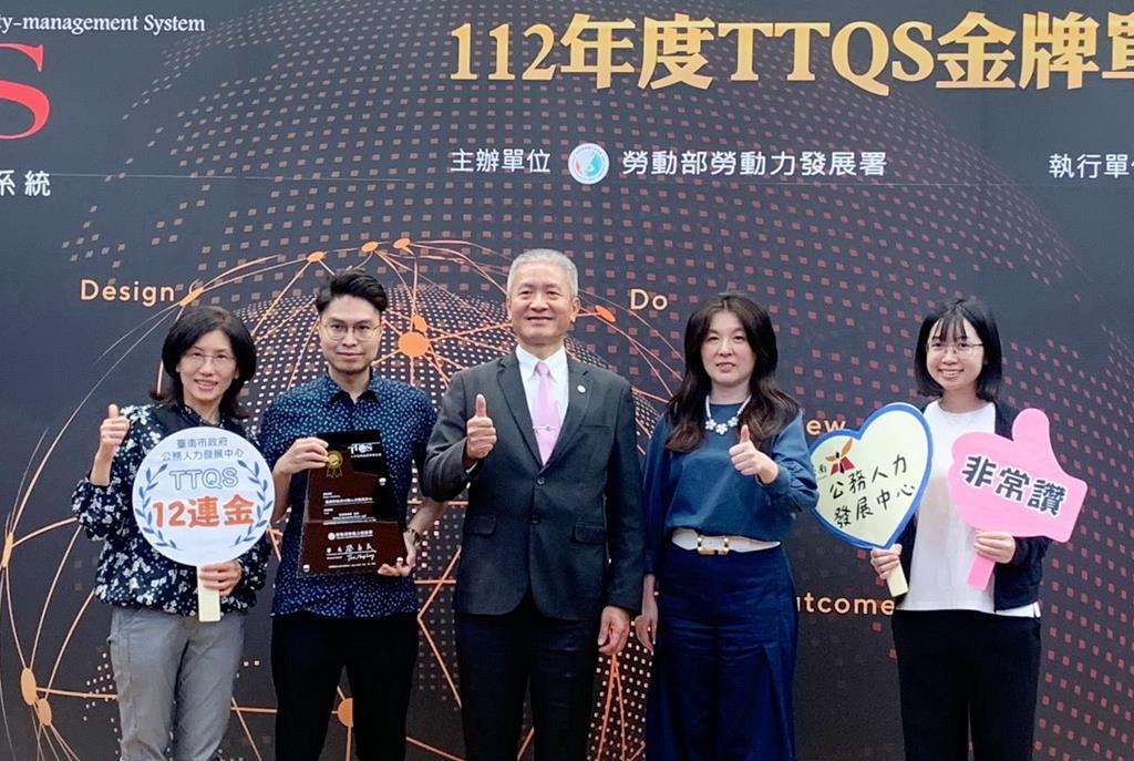 【記者黃潔台南報導】臺南市政府公務人力發展中心戮力培育優質公務人力,榮獲「112年度TTQS人才發展品質管理系統評核」金牌肯定,出席勞動部勞動力發展署頒獎授證,為市府公務人力培育再創佳績。