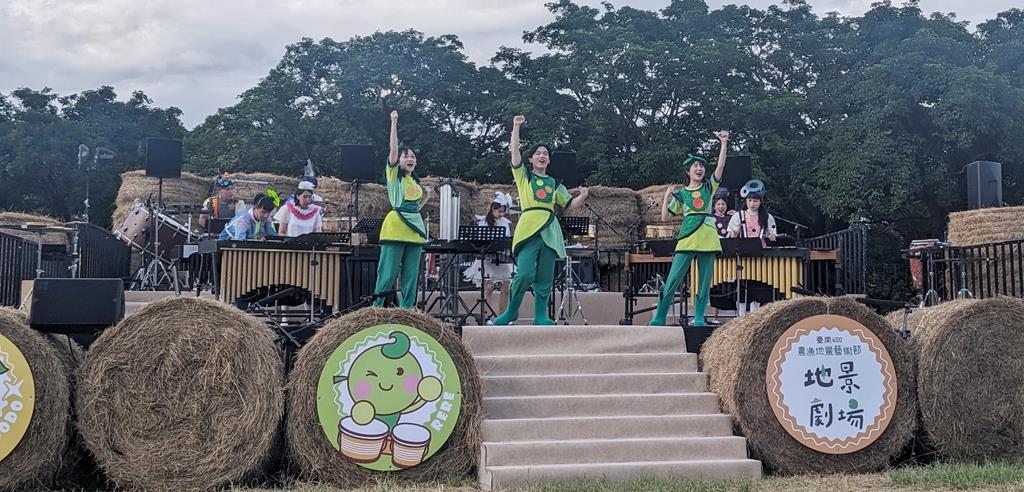 【記者黃潔台南報導】配合好芒牧草節活動,「臺南400農漁地景藝術節-地景劇場」第三場次29日於走馬瀨農場火熱登場,朱宗慶打擊樂團二以農場廣闊大草原為舞台,結合牧草球等元素帶來畜產主題的「藝擊玩家」,以親子音樂會形式,將耳熟能詳的兒歌設計改編成打擊樂,活潑旋律吸引大小親子席地聆聽與同樂,現場也發放牧草冰供民眾消暑。