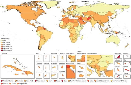 2021年年齡標準化糖尿病總盛行率。( Elsevier Ltd 出版)