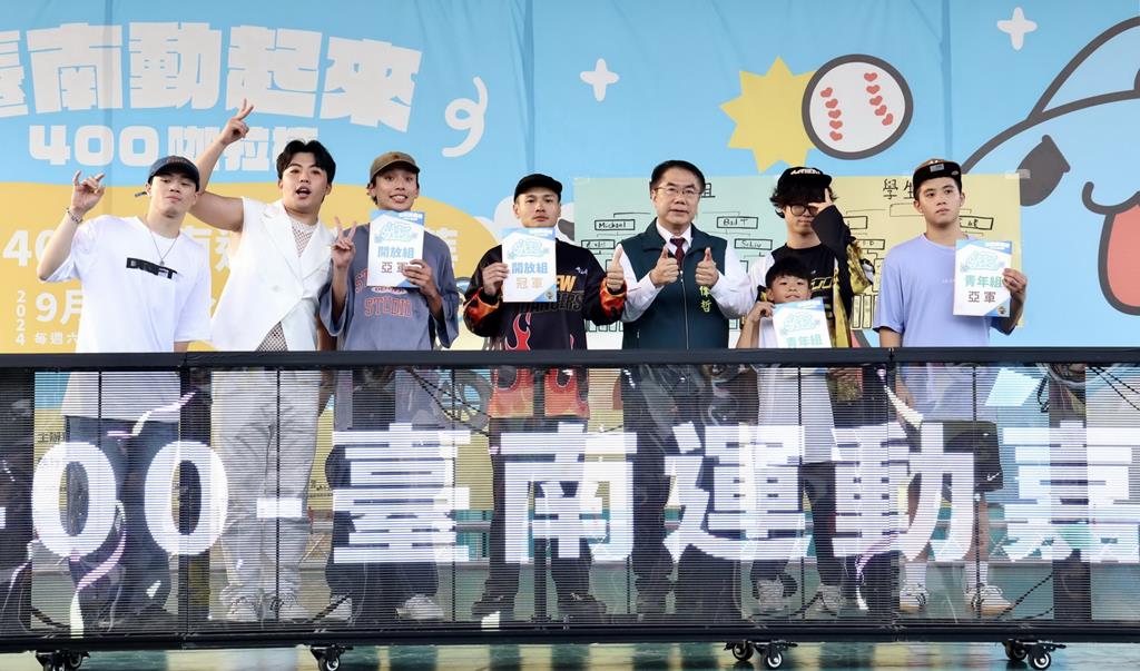 【記者黃潔台南報導】臺南市政府體育局9月連續四個周末在永華體育之心舉辦「臺南400運動嘉年華」,壓軸的街舞競賽29日登場,市長黃偉哲出席閉幕典禮頒獎,邀二組冠亞軍隊伍於市府耶誕跨年晚會中演出,也鼓勵民眾將運動熱情延續到日常生活中,讓運動成為健康生活的一部分,並宣布全民趣味路跑及扮裝賽接力登場,獎金高額報名從速。