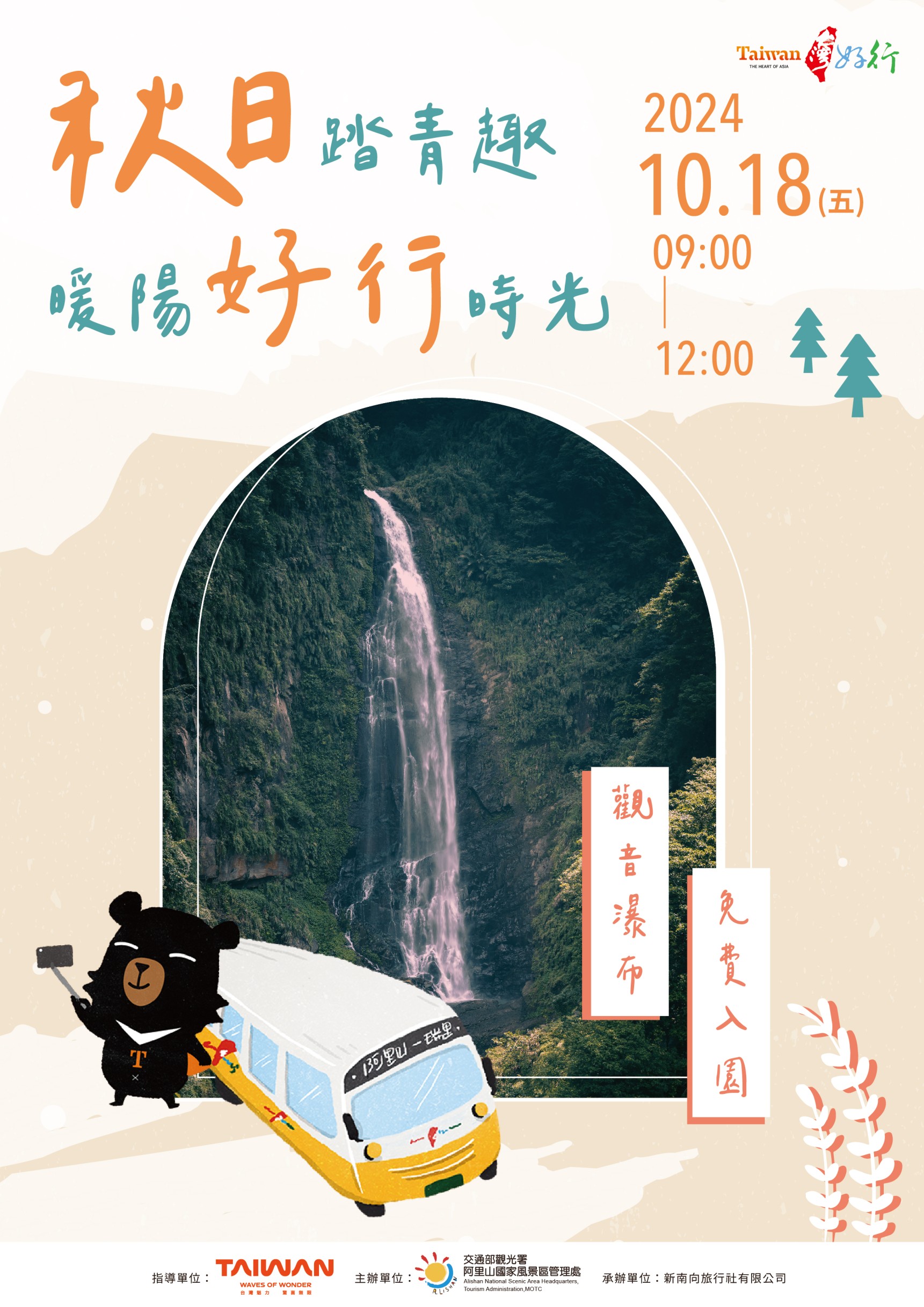 台灣好行瑞里線特別活動 10月18日觀音瀑布園區免費入園 秋日踏青不容錯過!