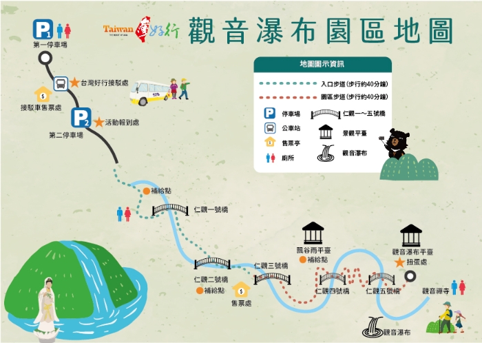 健行活動途中,參加者不僅可以欣賞觀音瀑布的壯麗景觀,阿里山管理處還在步道沿途設置了多個補給站,提供阿里山高山茶、精品咖啡、在地草仔粿、老楊方塊酥和奮起福米餅等特色小吃,讓遊客在享受美景的同時,品嘗阿里山的在地風味。此外,前200位抵達觀音瀑布平台的遊客還可參加扭蛋活動,獎項包含:鄒族喔熊3D造型一卡通、台灣好行環保餐具組、台灣好行瑞里線來回車票、觀音瀑布紀念扇…等,邀請大家一同來挑戰手氣,收穫驚喜!