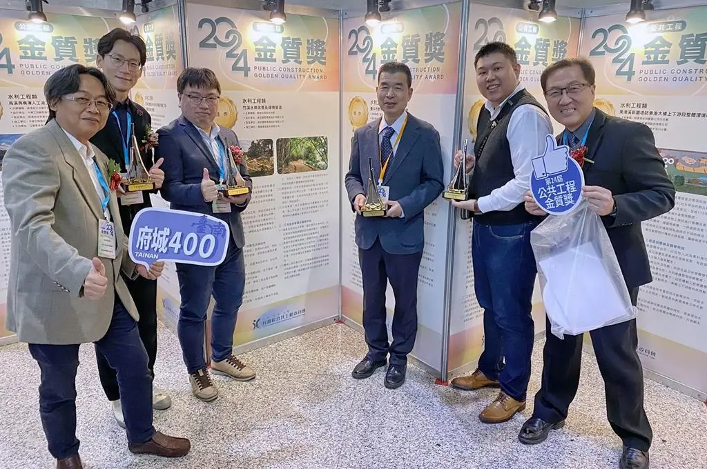 【記者黃潔台南報導】行政院公共工程委員會27日舉行「第24屆公共工程金質獎」頒獎典禮,臺南市政府水利局提報的「竹溪水岸改善及環境營造」榮獲佳作,水利局長邱忠川率團隊出席領獎。