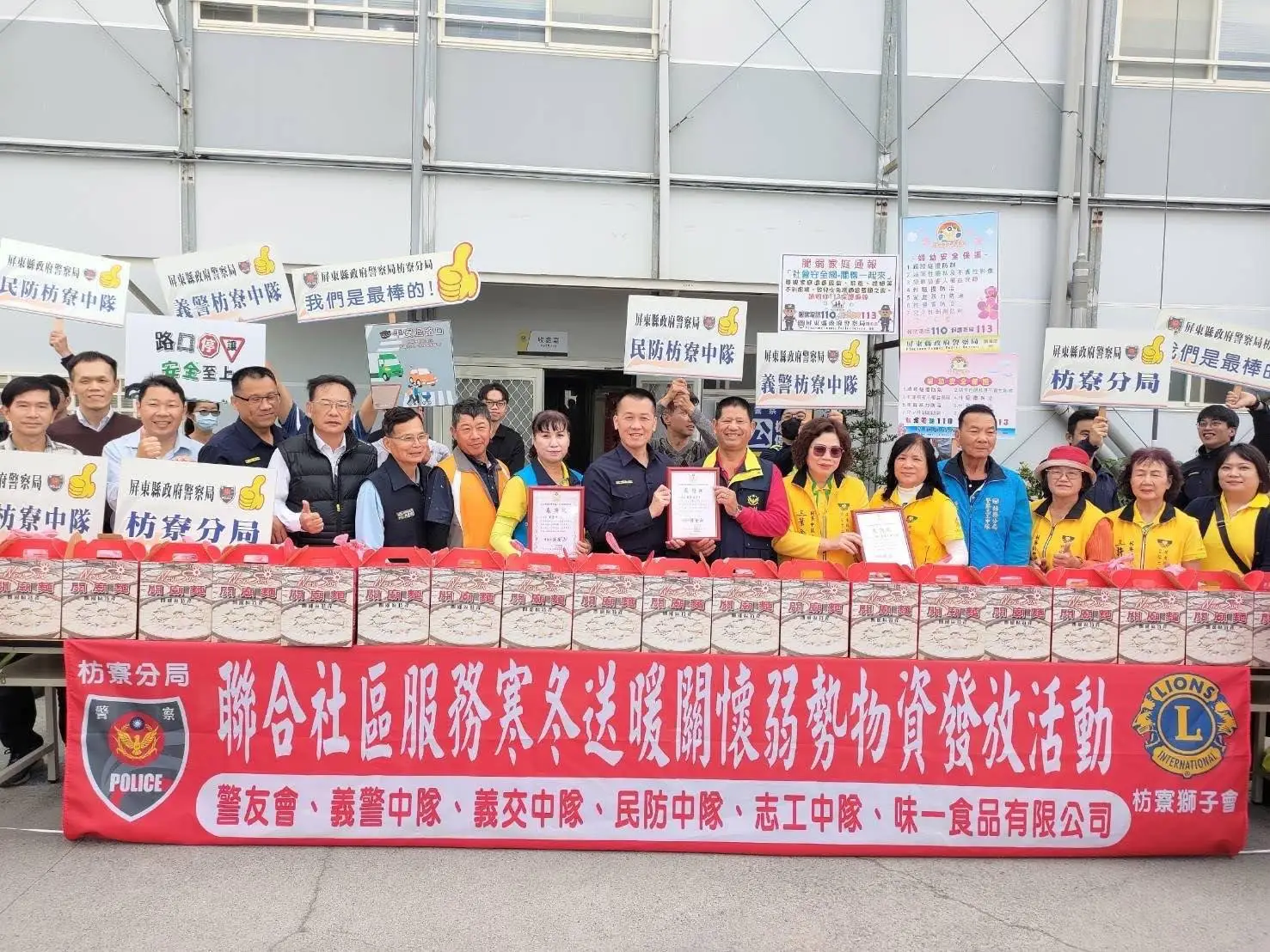各界善心人士結合警政單位主動關懷弱勢族群,發揮人飢己飢、人溺己溺之精神,對於需要幫助的家庭,送上最需要的民生物資,使他們能感受善心人士與枋寮分局員警滿滿的愛心,在農曆年節到來前注入一股暖流。