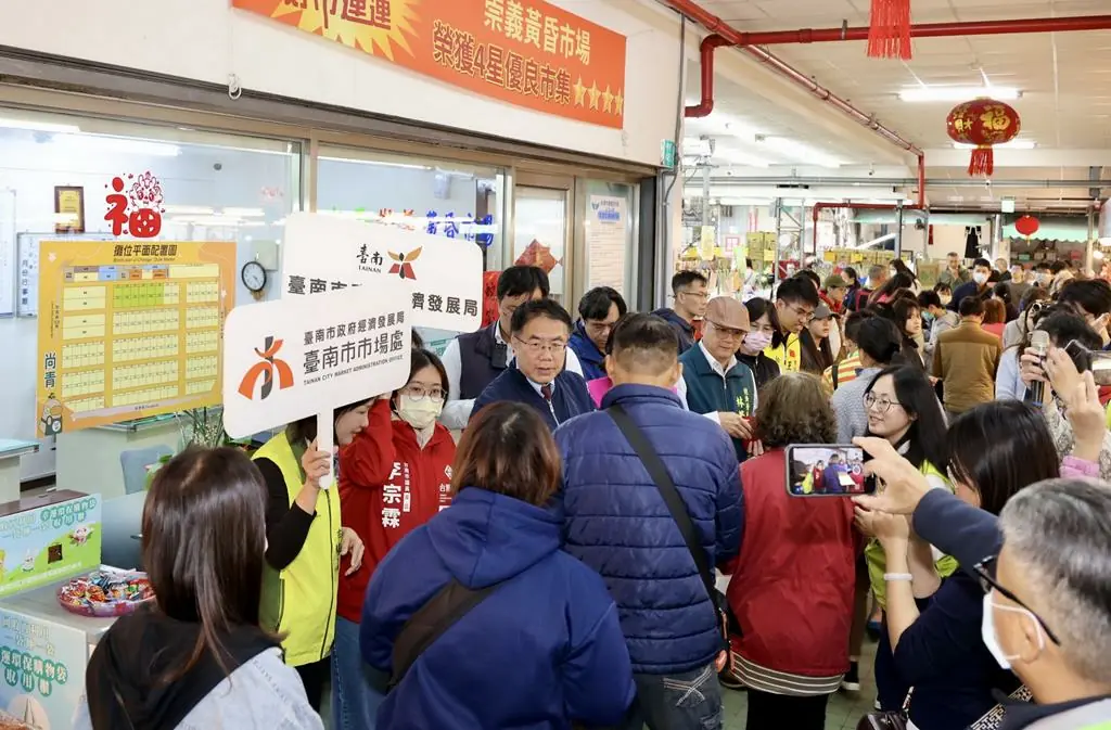 【記者黃潔台南報導】為搶攻農曆新年商機及為臺南購物節衝買氣,臺南市政府經發局與市場處特舉辦「小北商場114年春節銅板快閃夠購GO」活動,於小北商場快閃發送50元抵用券;市長黃偉哲也特至小北商場及東區崇義黃昏市場關心蔬果、豬肉、魚肉價格與民生用品採辦需求狀況,並分送蛇年開運小紅包給攤商及消費者,現場人潮絡繹不絕,年節歡樂氣氛濃厚。