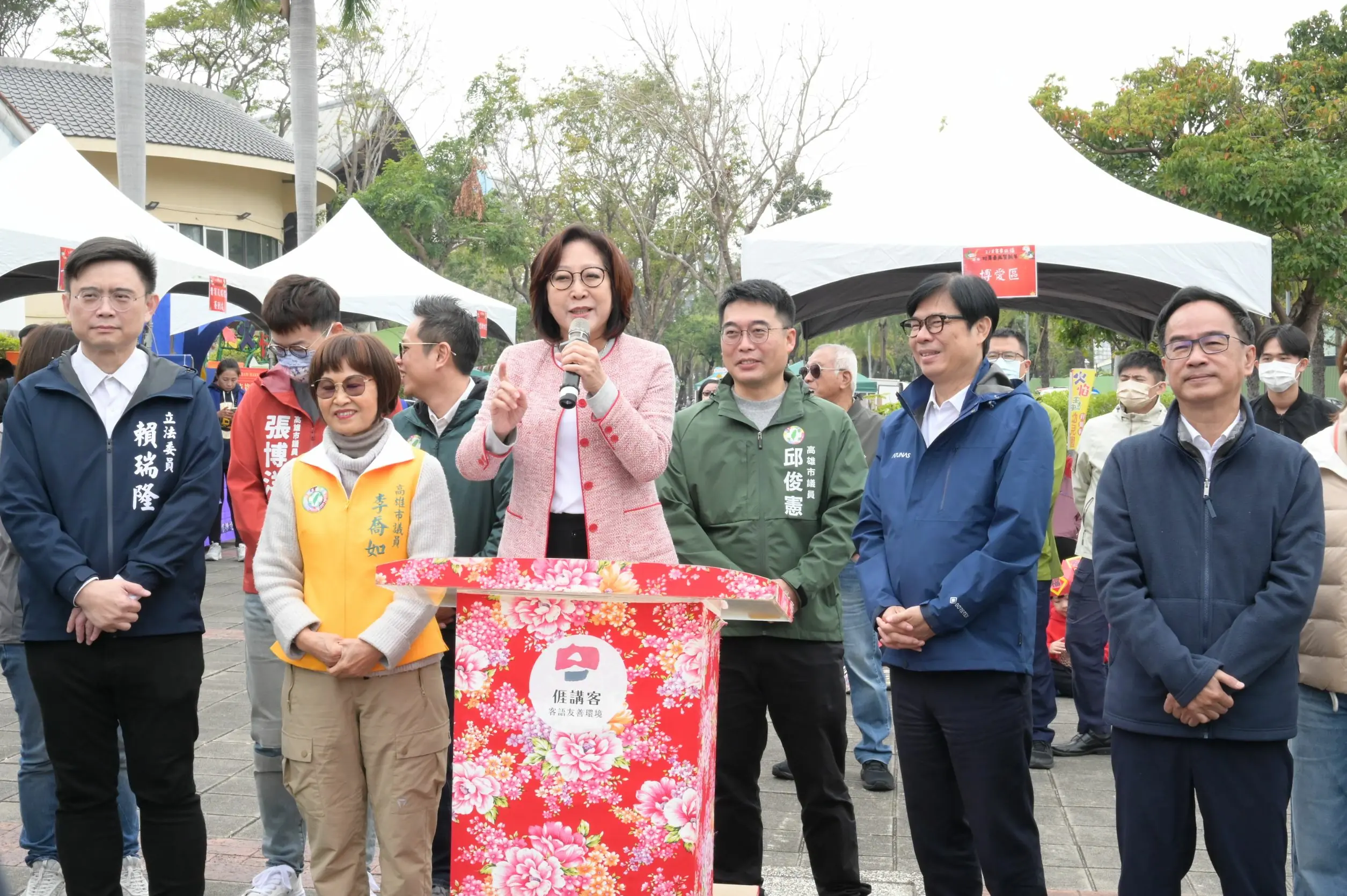 現場,市長陳其邁也發放了蛇年開運紅包及客家圓粄,讓民眾一同品嚐道地客家美食,現場洋溢著熱烈的年節氣氛,並有客家八音演奏,開場的客家童趣表演以及客家舞獅,讓大家一同感受新春的歡樂與喜慶。