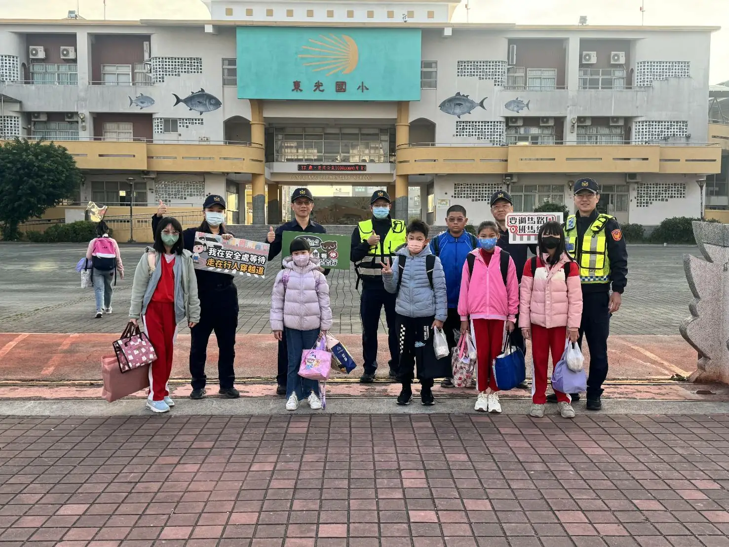 【記者廖銘瑞/屏東報導】 隨著春節連假畫下句點,新學期於(11)日正式開學,為維護學童人身及交通安全,東港警分局啟動「護童勤務」,結合民防義警、志工導護媽媽及學校師長,共同於學童上、放學時段加強校園周邊交通安全,提高見警率,讓駕駛人慢、看、停,行人安全行,保護學童安心上學。