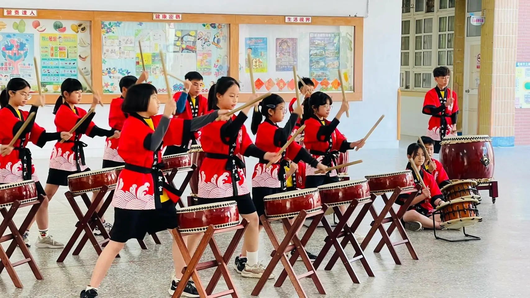 接著,在劉頂順主任的指導下,文祥國小學生親手體驗敲擊太鼓,感受傳統樂器的震撼力道。文祥國小學生則以合唱回贈,悠揚純淨的歌聲在校園內迴盪,透過音符傳遞彼此的友誼,讓兩校的交流更加深刻動人。