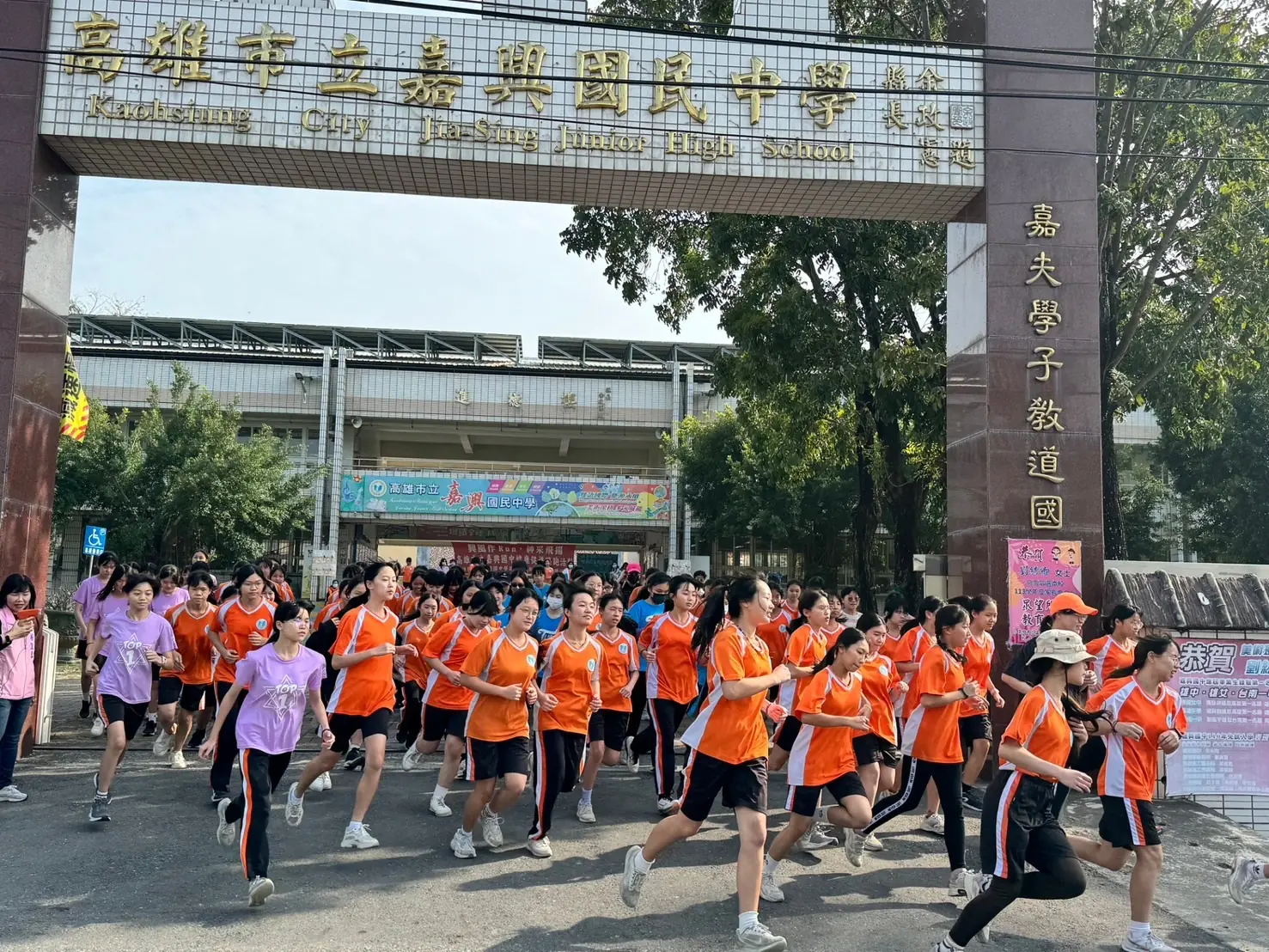 【記者陳雯萍高雄報導】「原來我們的家鄉這麼美!」嘉興國中學生奔跑在熟悉卻又陌生的道路上,興奮地驚呼。岡山區嘉興國中今(27)日舉行「健康促進無手機日拒菸反毒路跑」,親師生共同跑完3公里路程,在揮灑汗水的同時,也用行動宣示遠離菸毒、擁抱健康生活。校長呂美儀表示,這場路跑不僅讓學生親身體驗運動的樂趣,更希望他們放下手機,珍惜與人互動的美好,並透過實際行動展現社區認同與歸屬感。