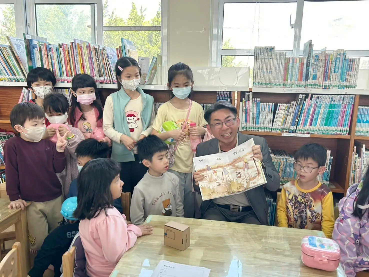 永安國小李安世校長在上學期曾透過皮影戲演繹繪本《斗笠/皮影》,這次則運用立體書,讓孩子在「你藏,我找」的互動遊戲中提升閱讀樂趣。永安國小學生蔡承佑笑著分享,書中的小狗最吸引他,因為牠的頭可以上下動,讓故事變得更加生動。