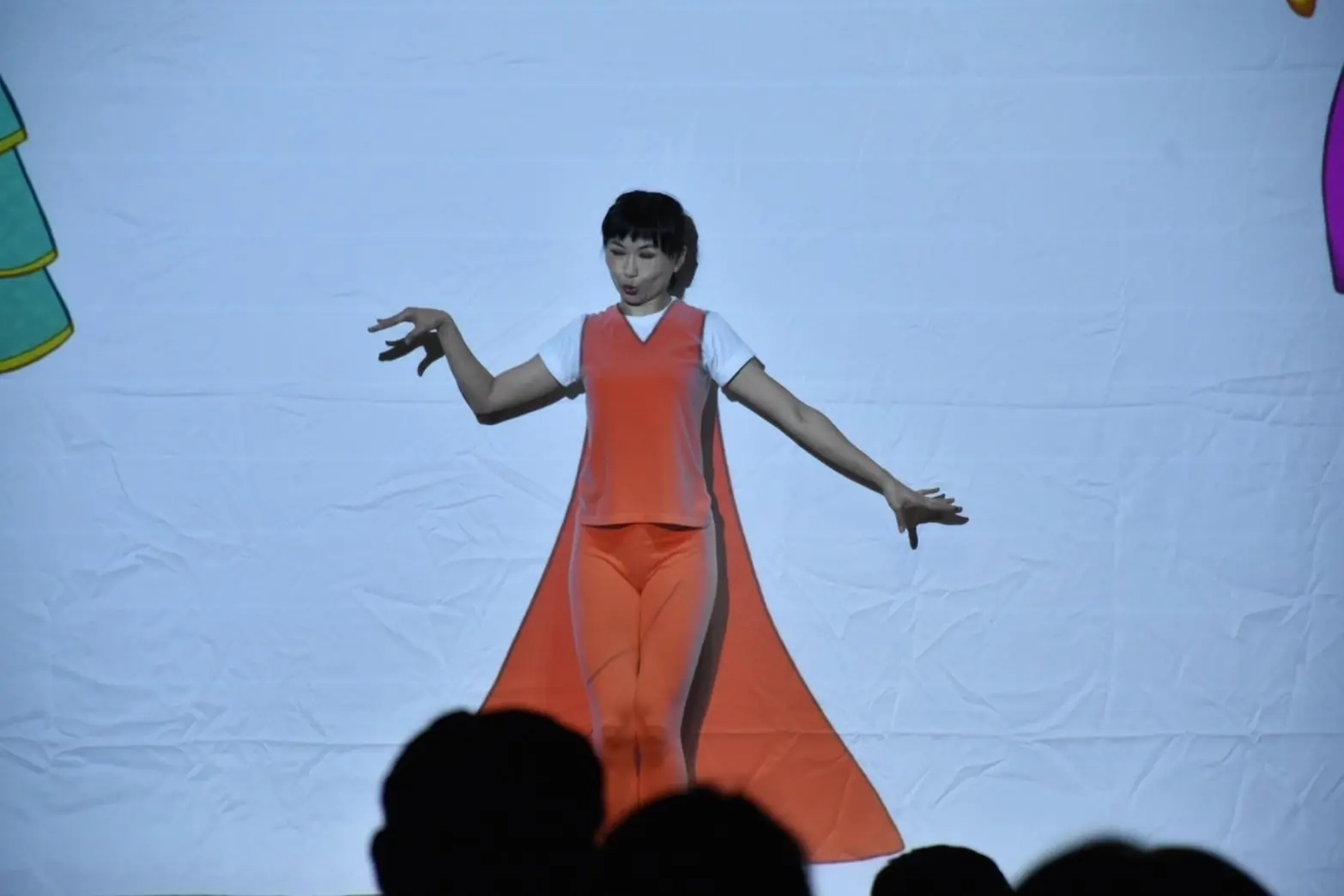圖/主演者劉婉君結合手繪動畫,以精準的肢體、現場音樂及影像互動,創造舞演樂合一的劇場演出。(高科大提供)
