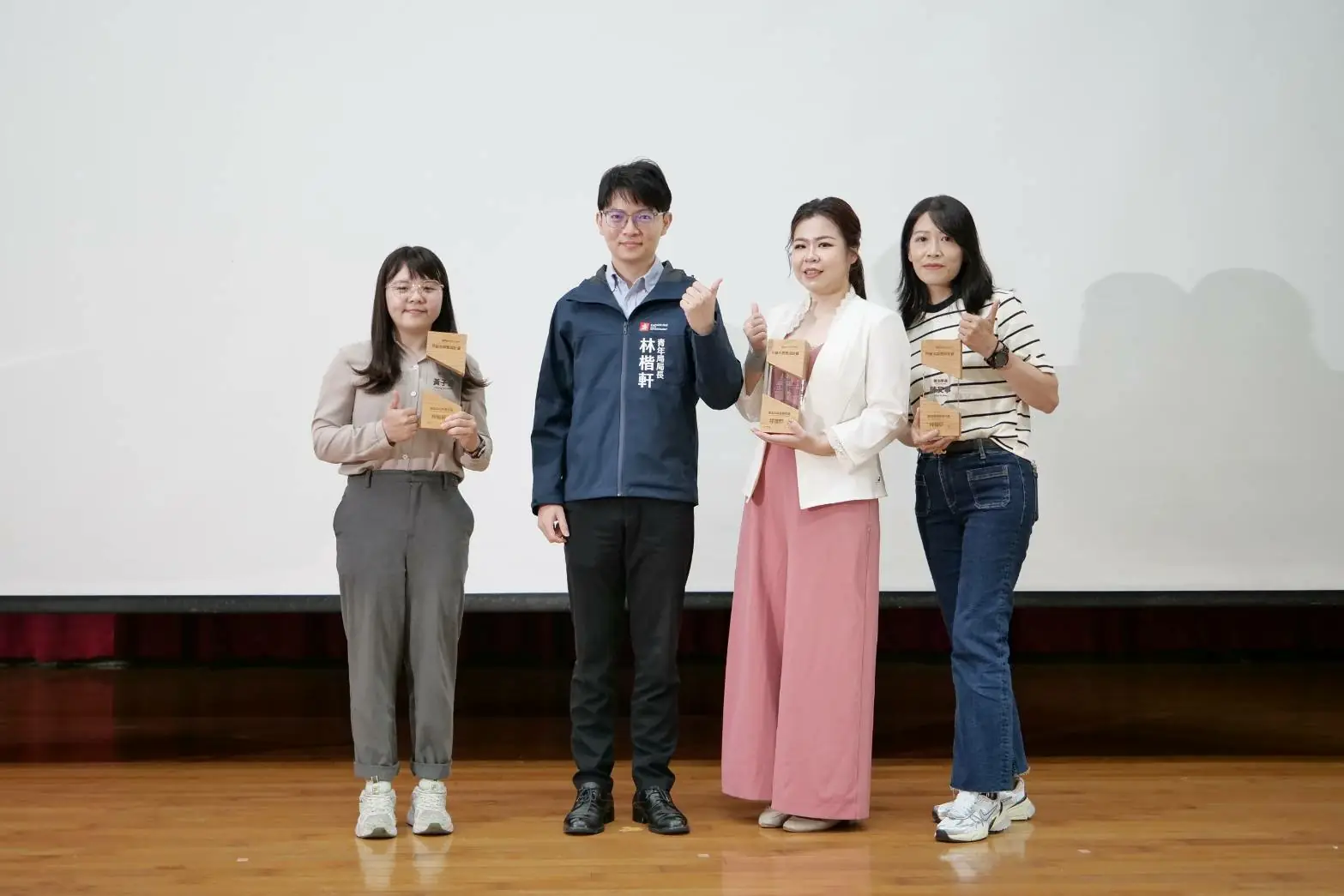 圖說:高市青年局長林楷軒(左二)頒發「傑出學員獎」給予「行銷大師養成計畫」結訓後的學員,肯定學員在各產業領域的傑出表現。(青年局提供)